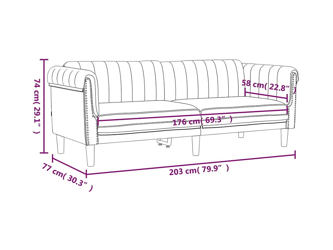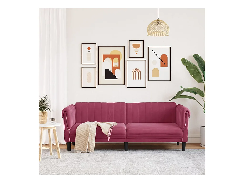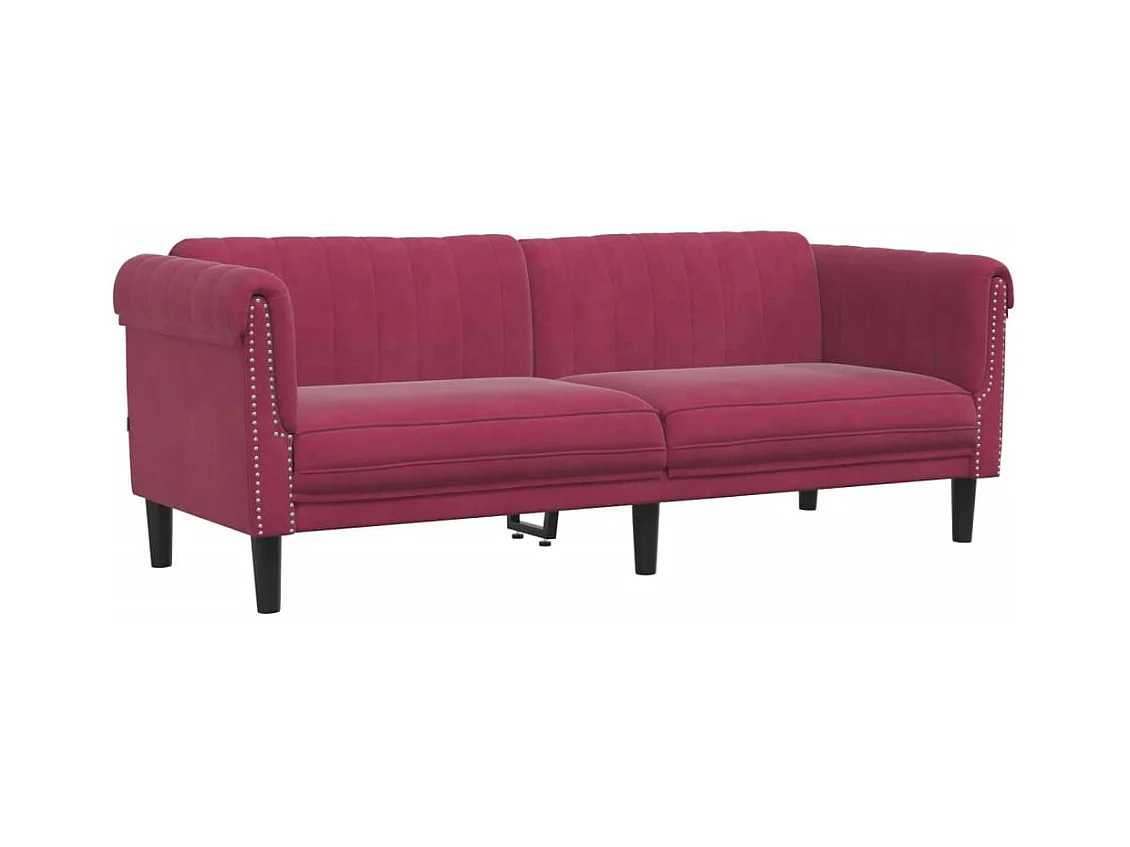 Divano con Cuscini 3 Posti Rosso Vino in Velluto