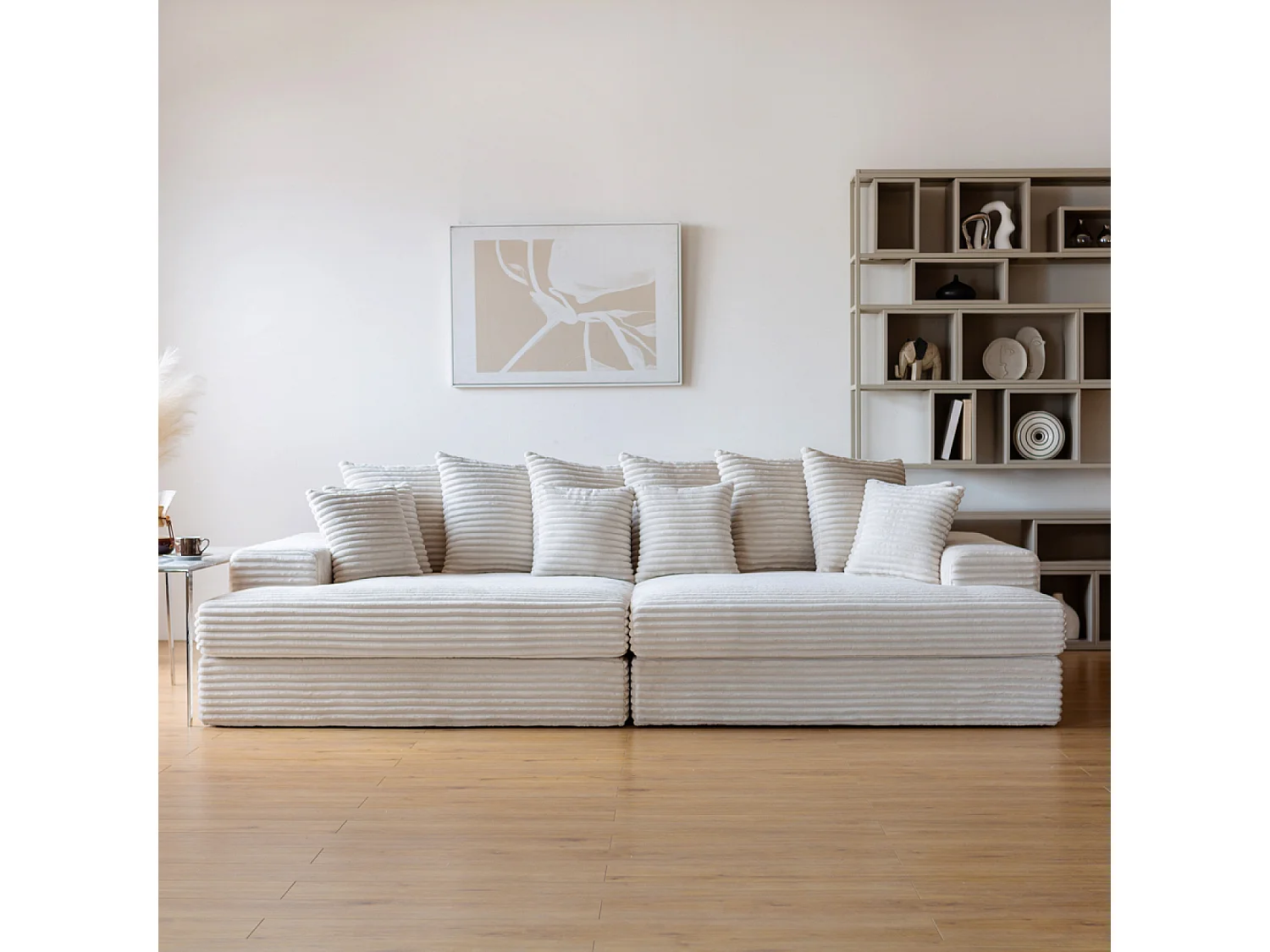 Divano a 4 Posti in Velluto a Coste Beige Profondo Seduta Confortevole