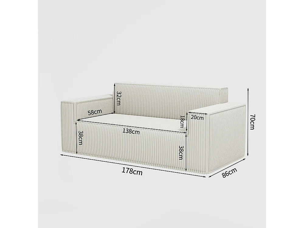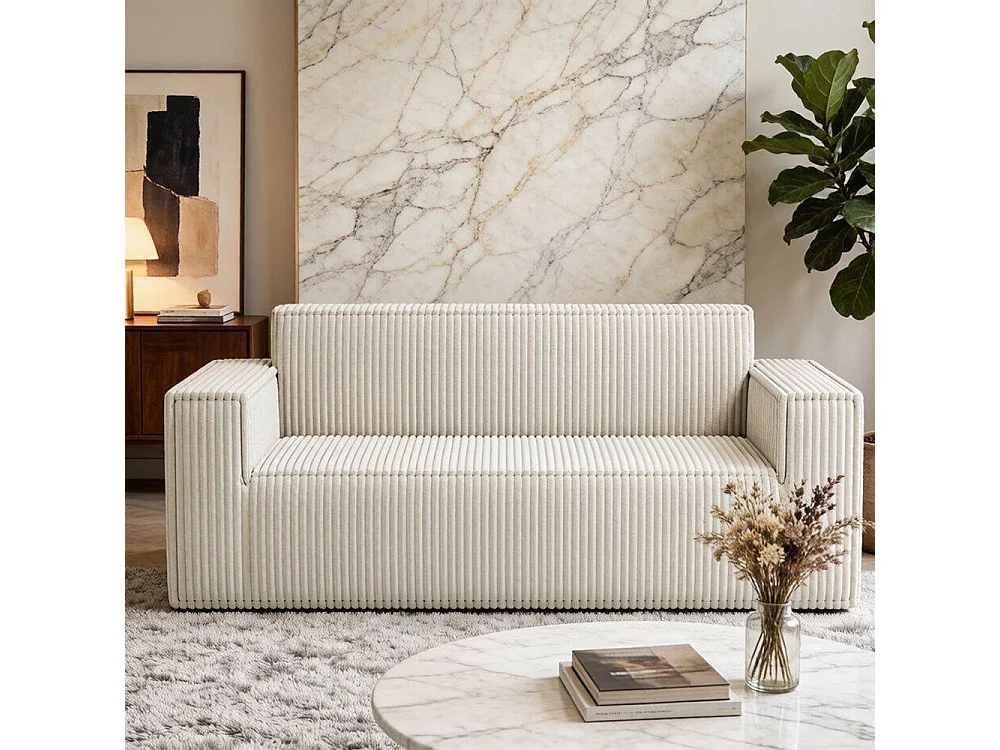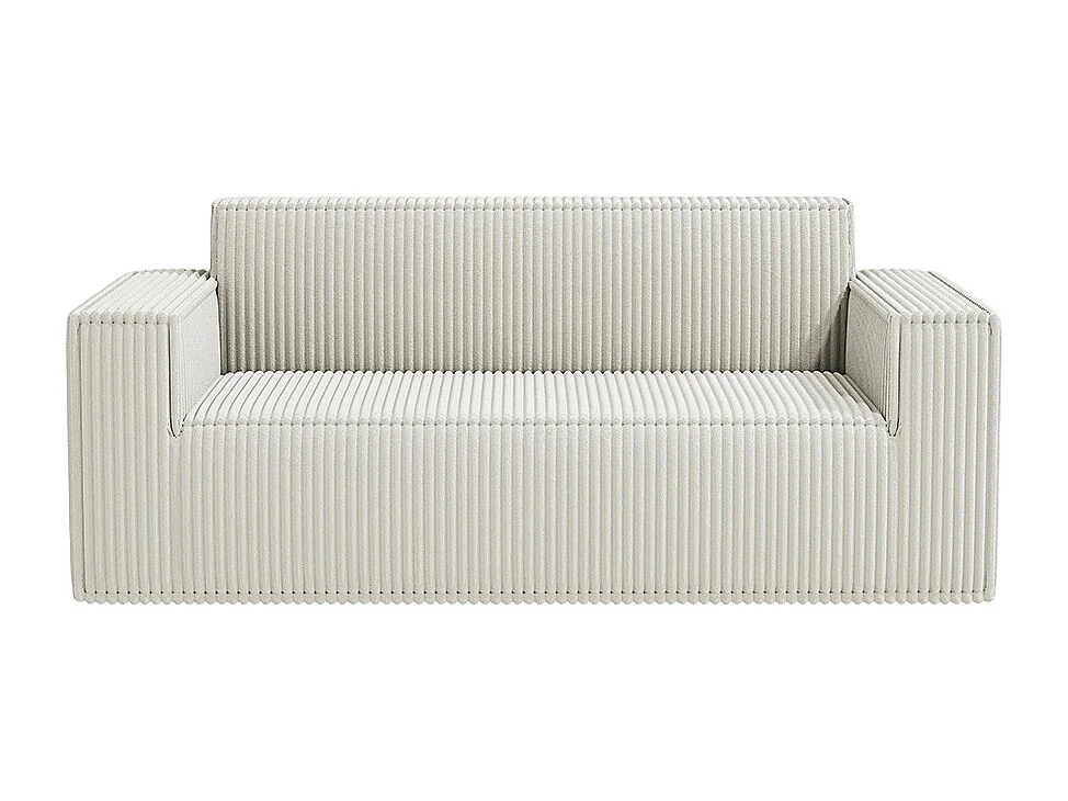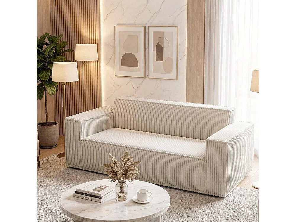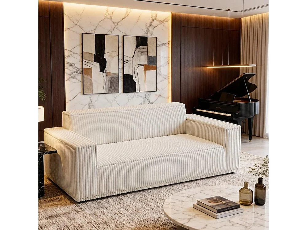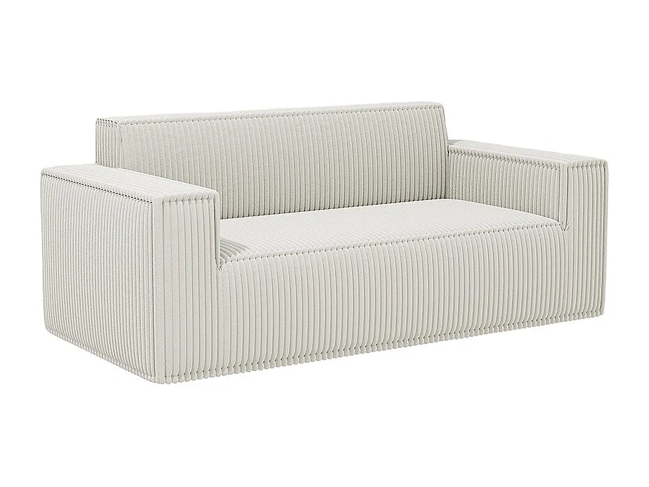 Divano a due posti con seduta profonda, velluto a coste, senza piedini, non richiede assemblaggio, facile da spostare, bianco