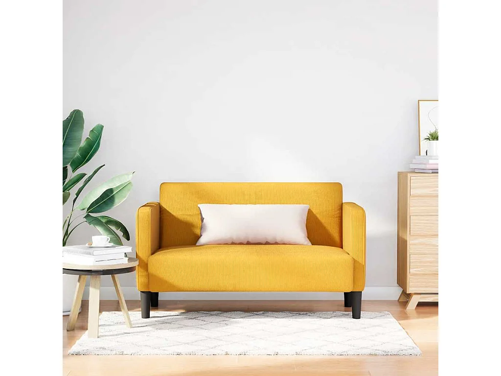 Divano a due posti giallo chiaro 109 cm tessuto velluto a coste
