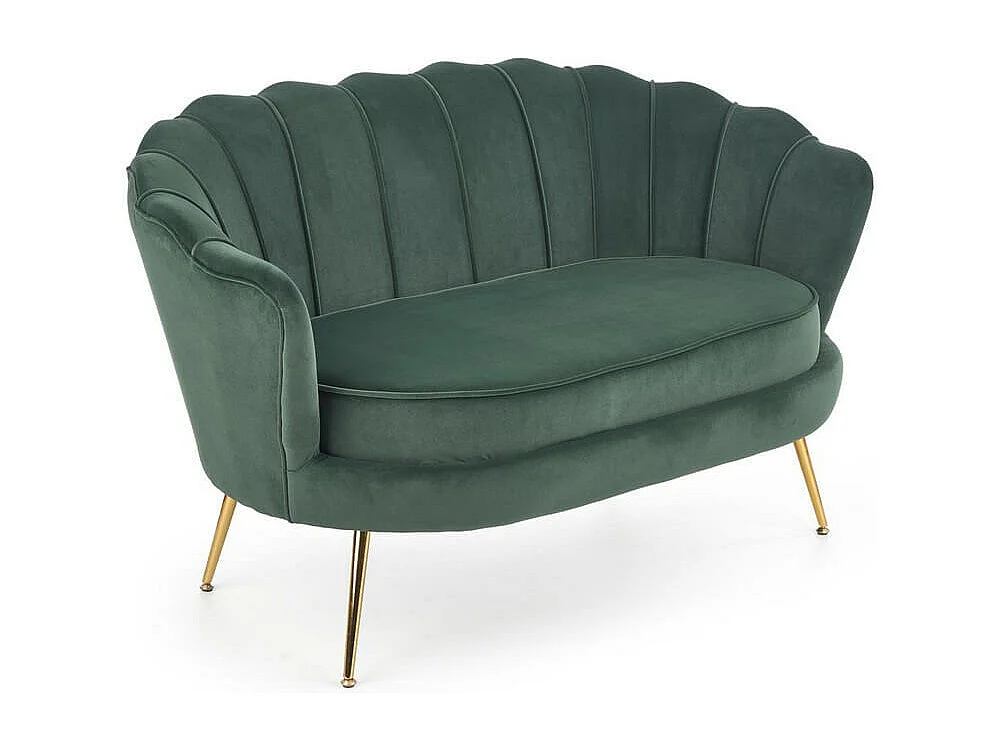 Divano a guscio in velluto verde con gambe in metallo dorato CAPRICA XL