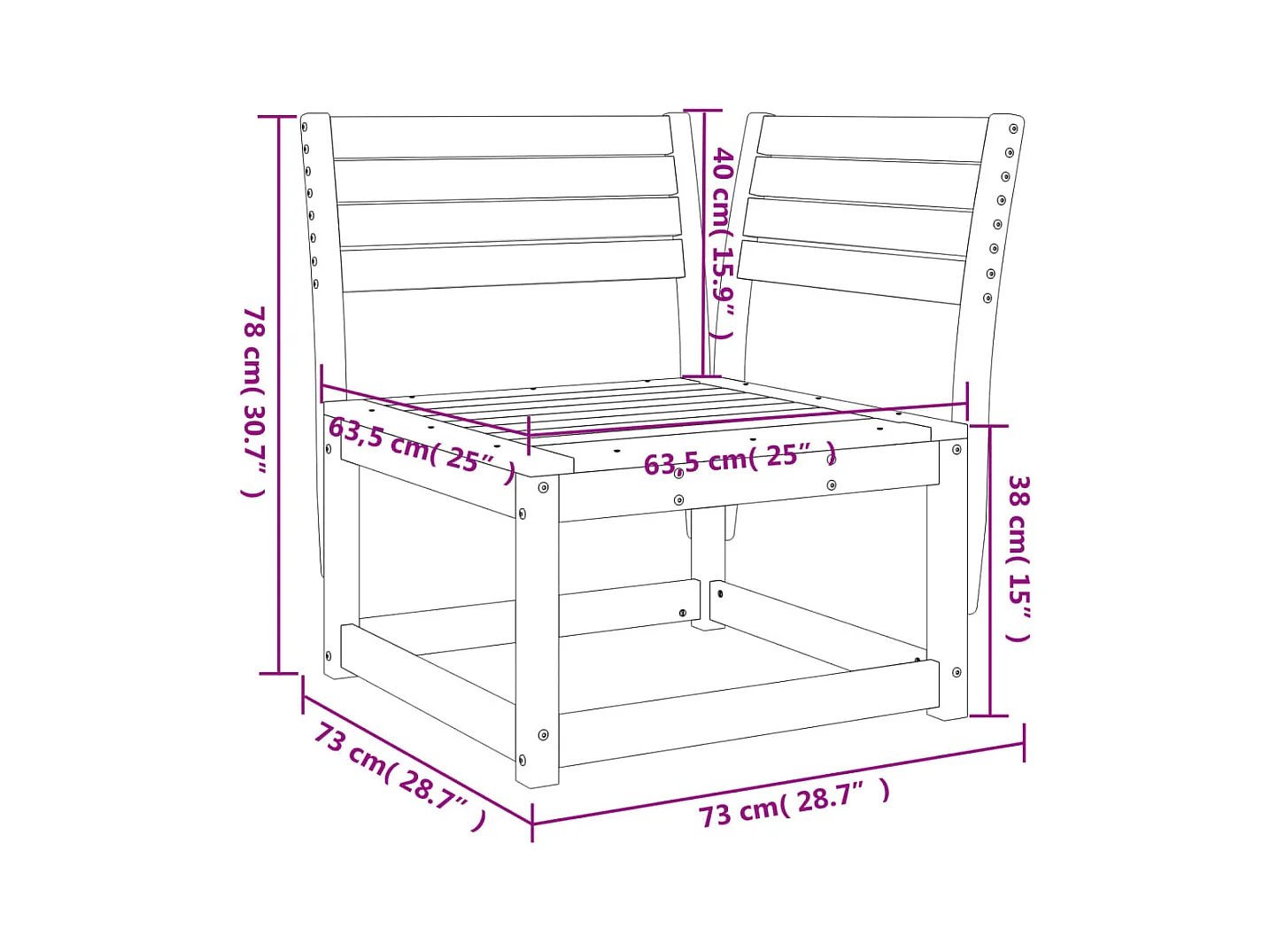 Sedia da giardino bianca 57,5x63x76 cm in legno massello di pino