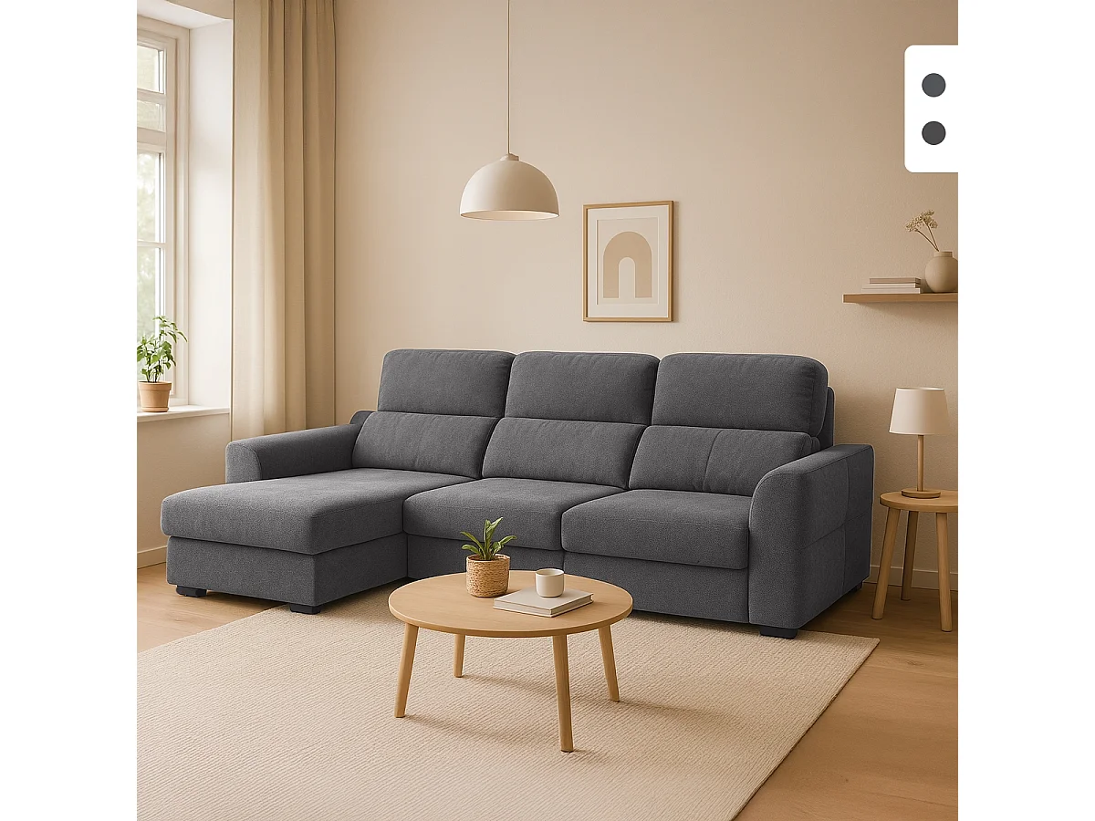 Divano 3 posti con penisola a sinistra e poggiatesta regolabile Tivon - Antracite
