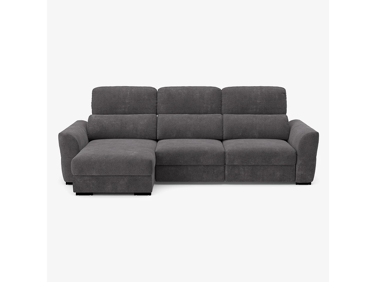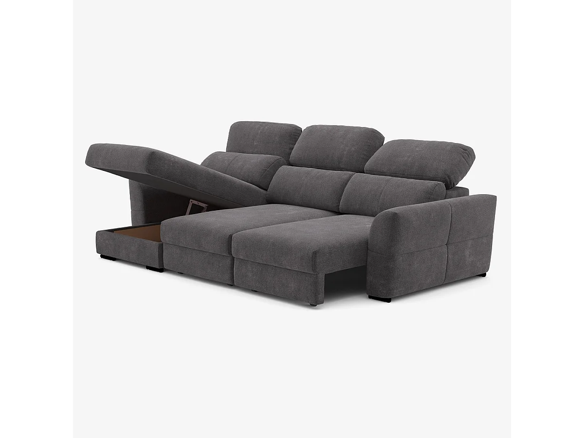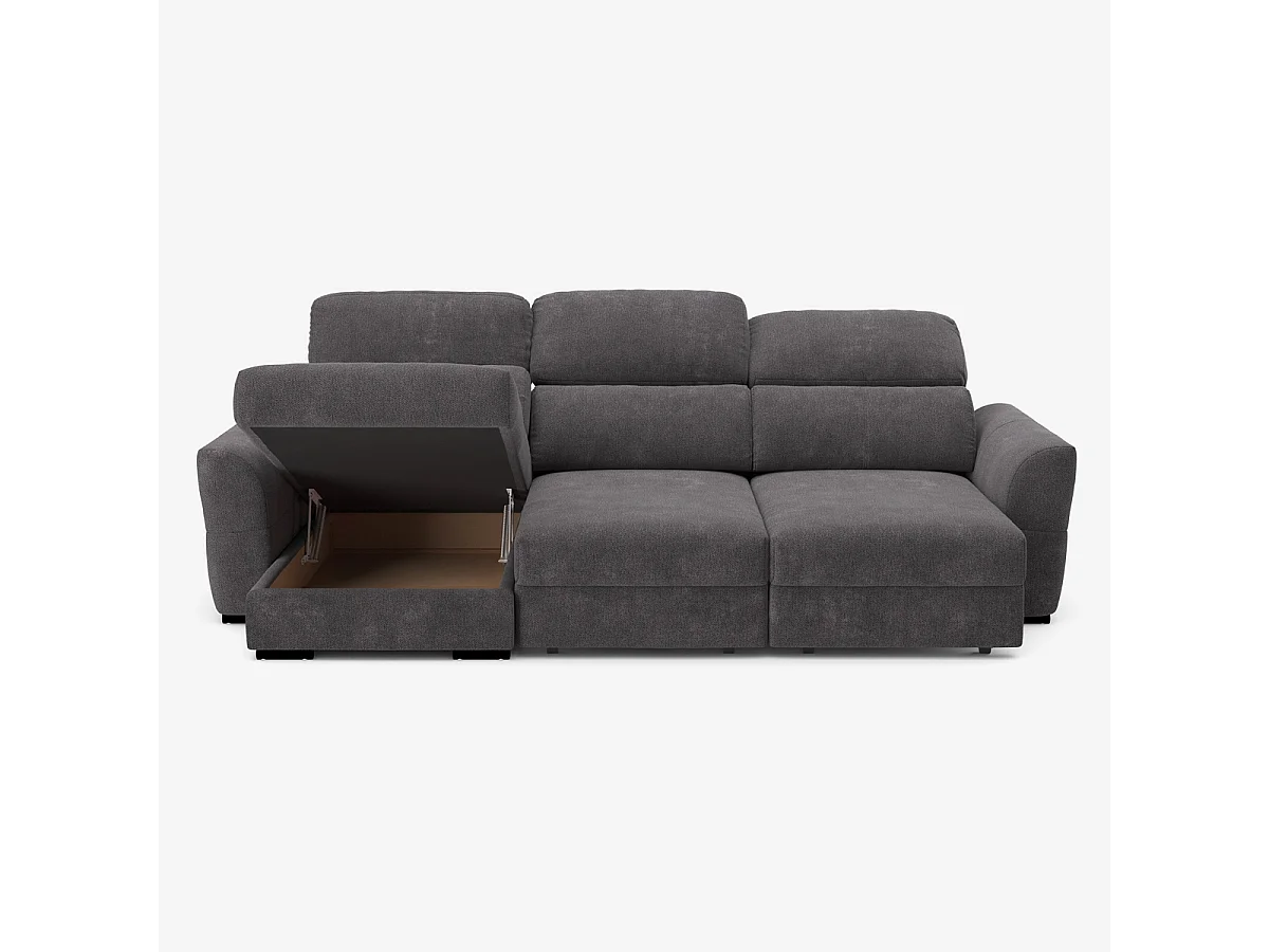 Divano allungabile relax penisola contenitore sinistra ciniglia 3 posti Sira - Grigio Scuro