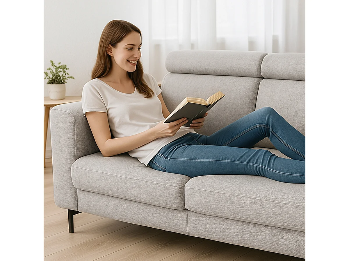 Divano 3 posti design moderno con poggiatesta regolabile Rouna - Beige