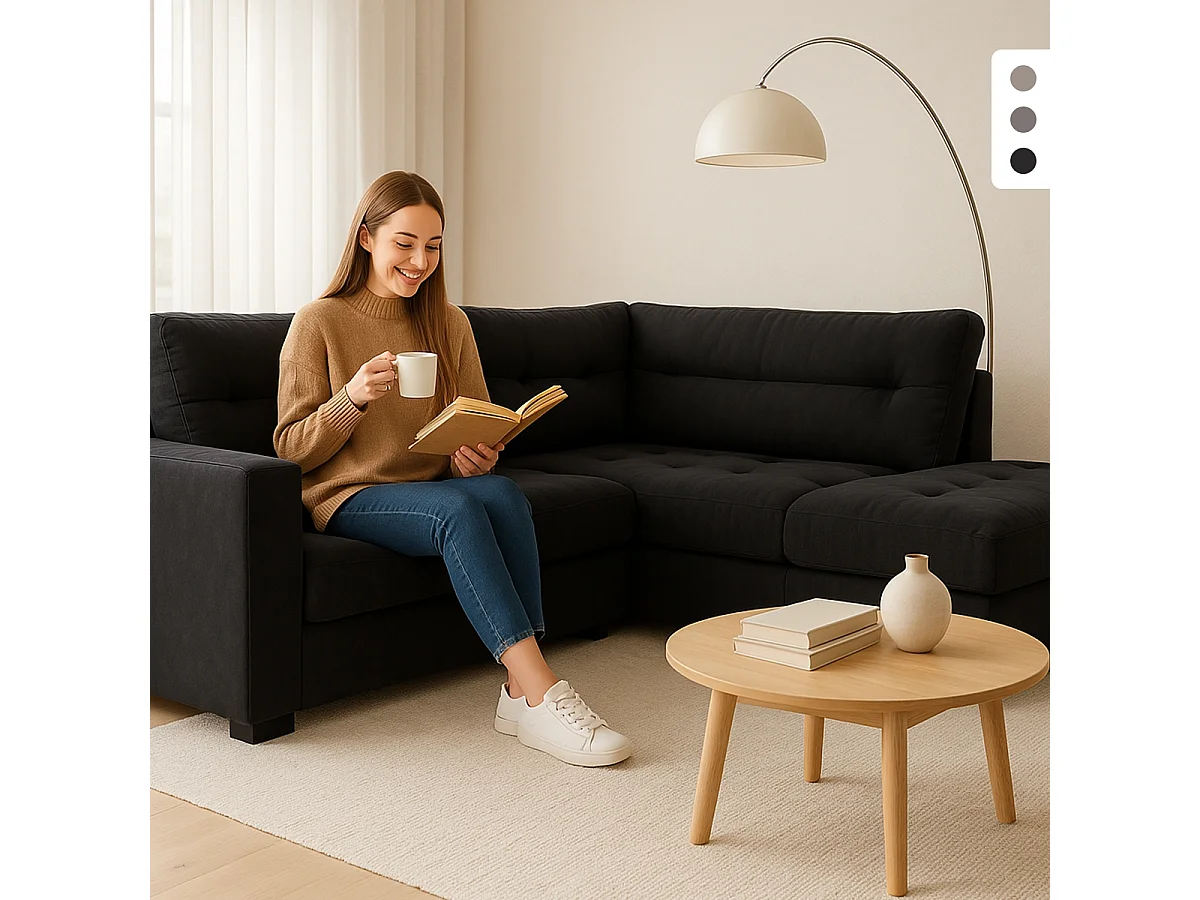 Divano angolare 3 posti moderno in tessuto con penisola a destra Rocca - Nero