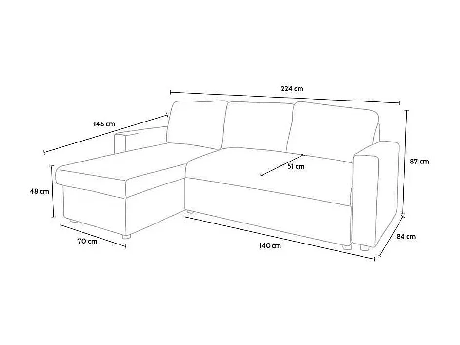 Divano angolare 3 posti tessuto con contenitore Castagno