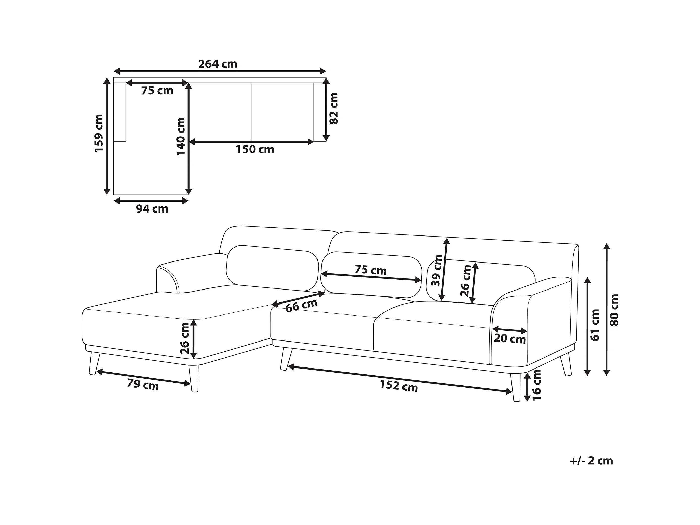Divano a L 3 posti - 250 x 158 x 60 cm - con chaise longue + braccioli + 3 cuscini - Ciniglia - beige