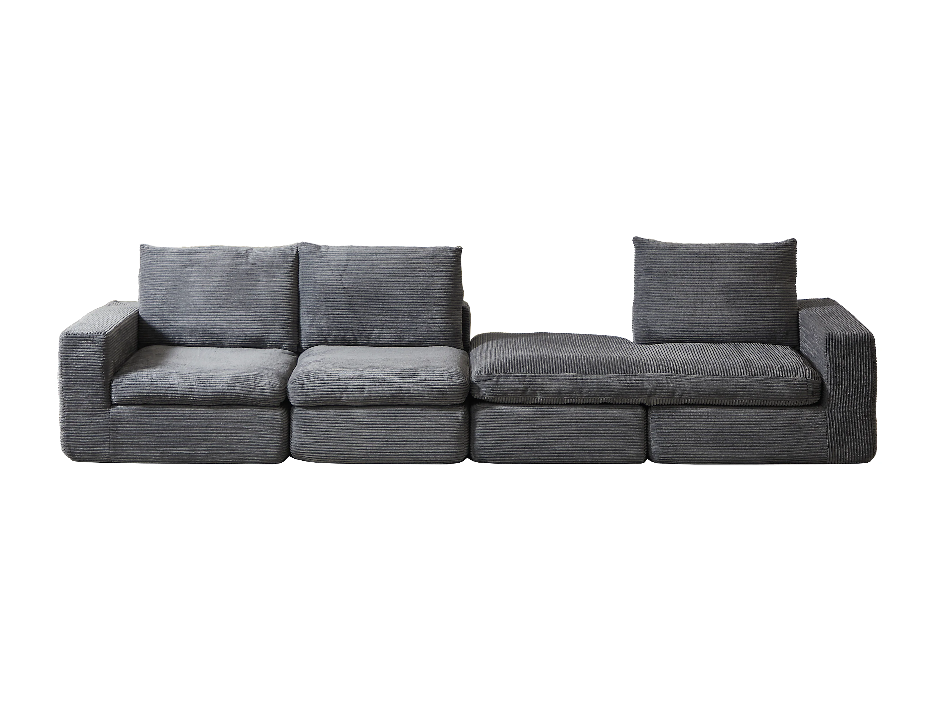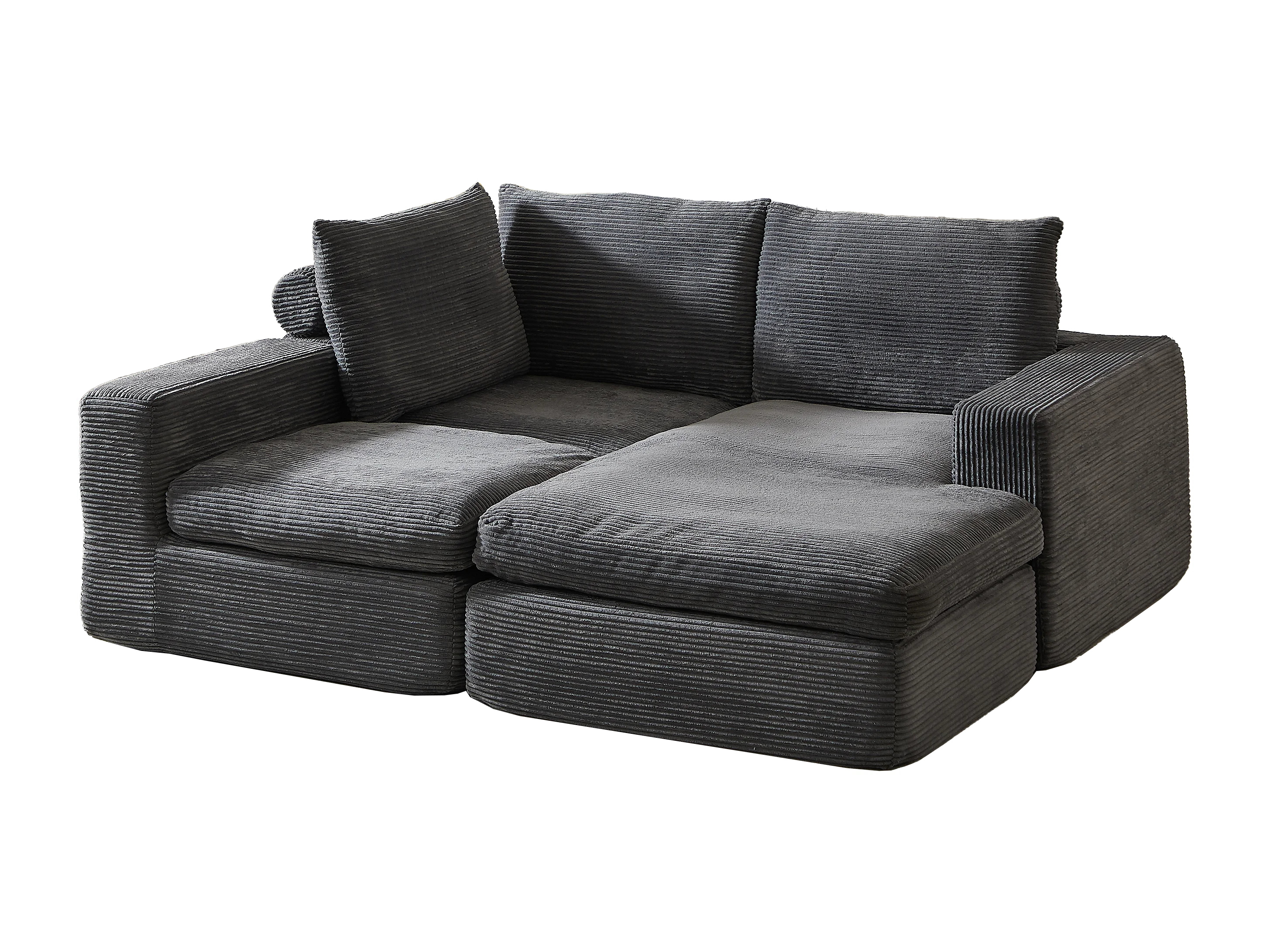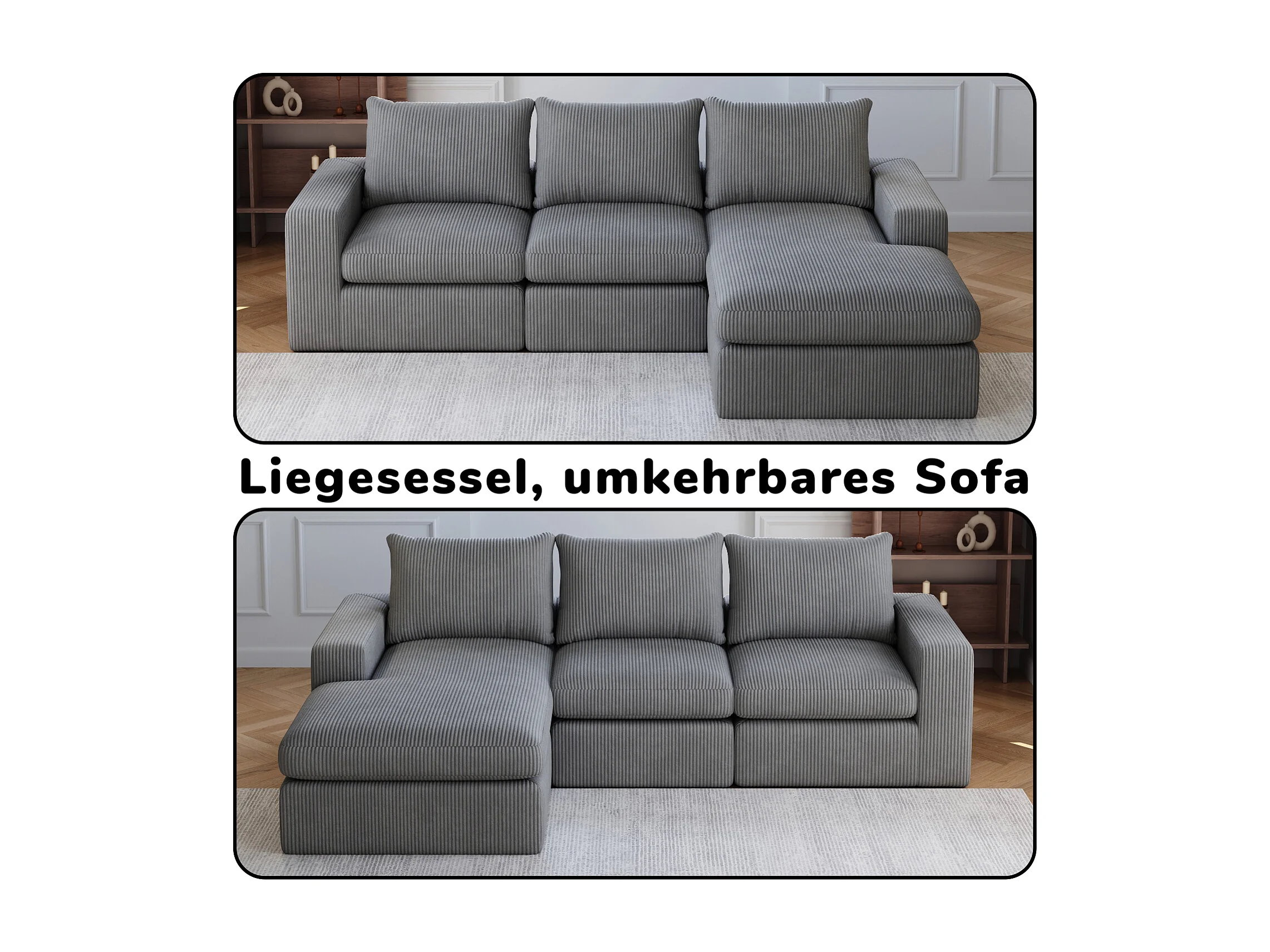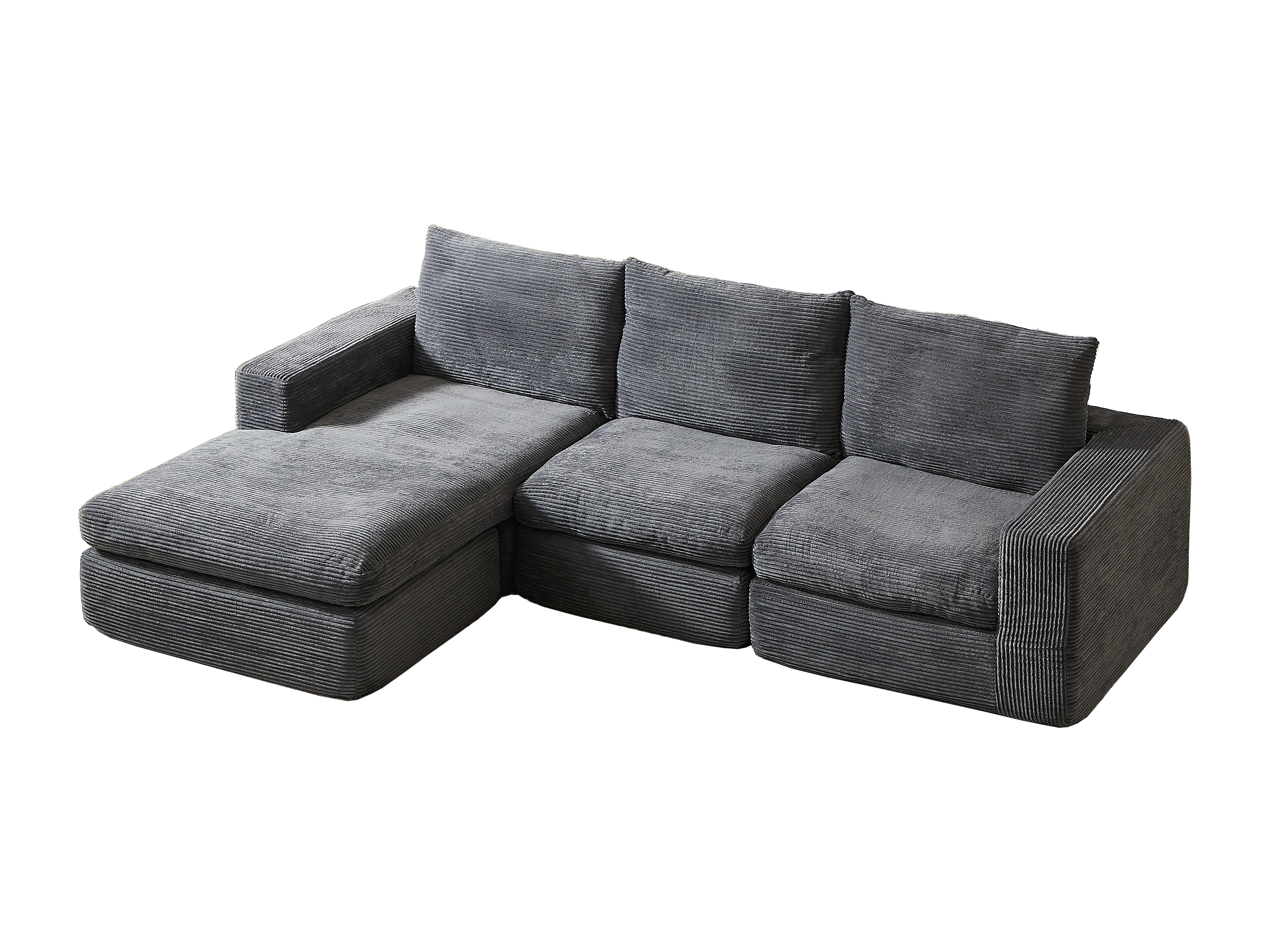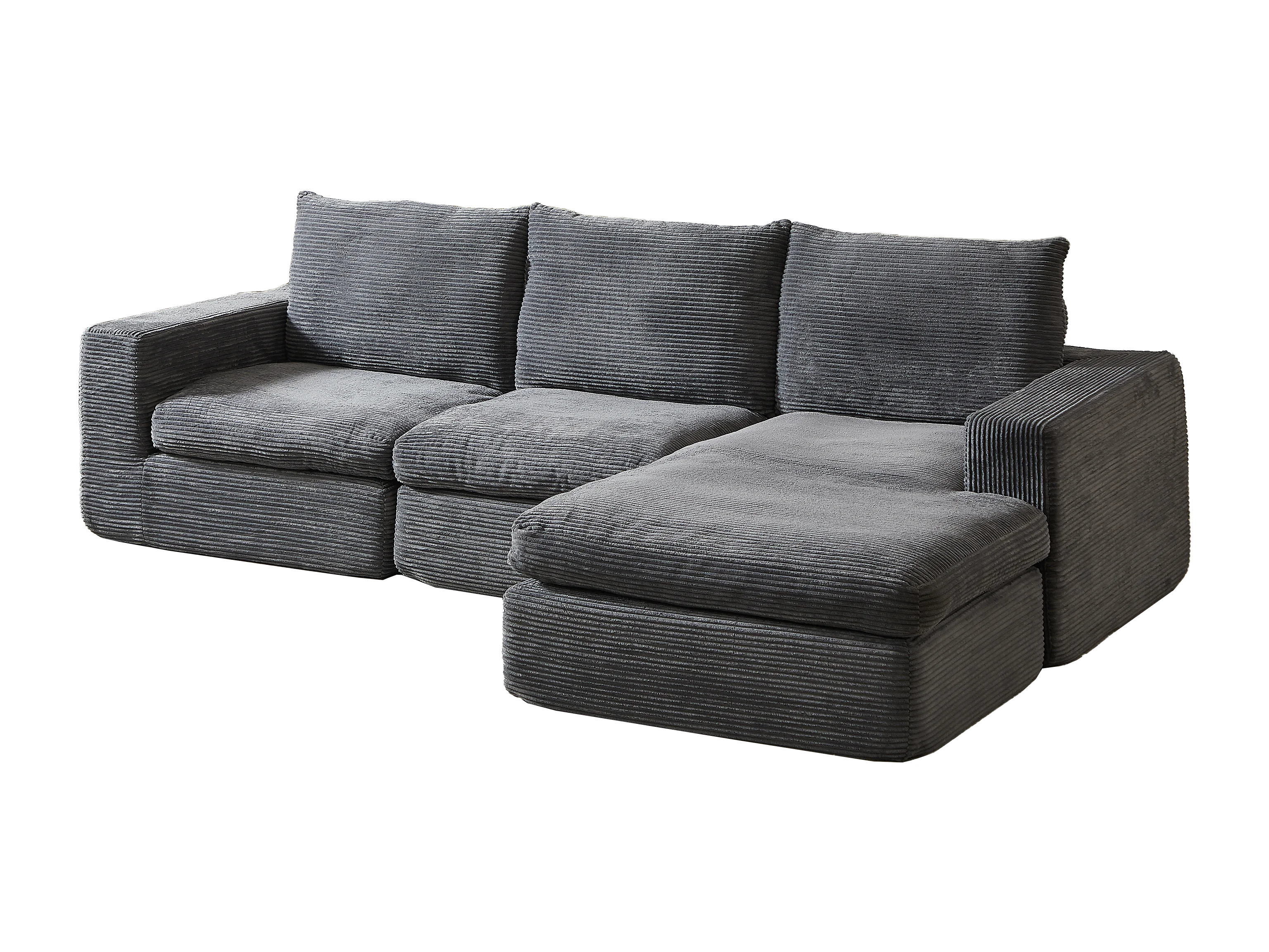 Divano angolare a 3 posti con chaise longue e 3 cuscini - Velluto a coste grigio scuro
