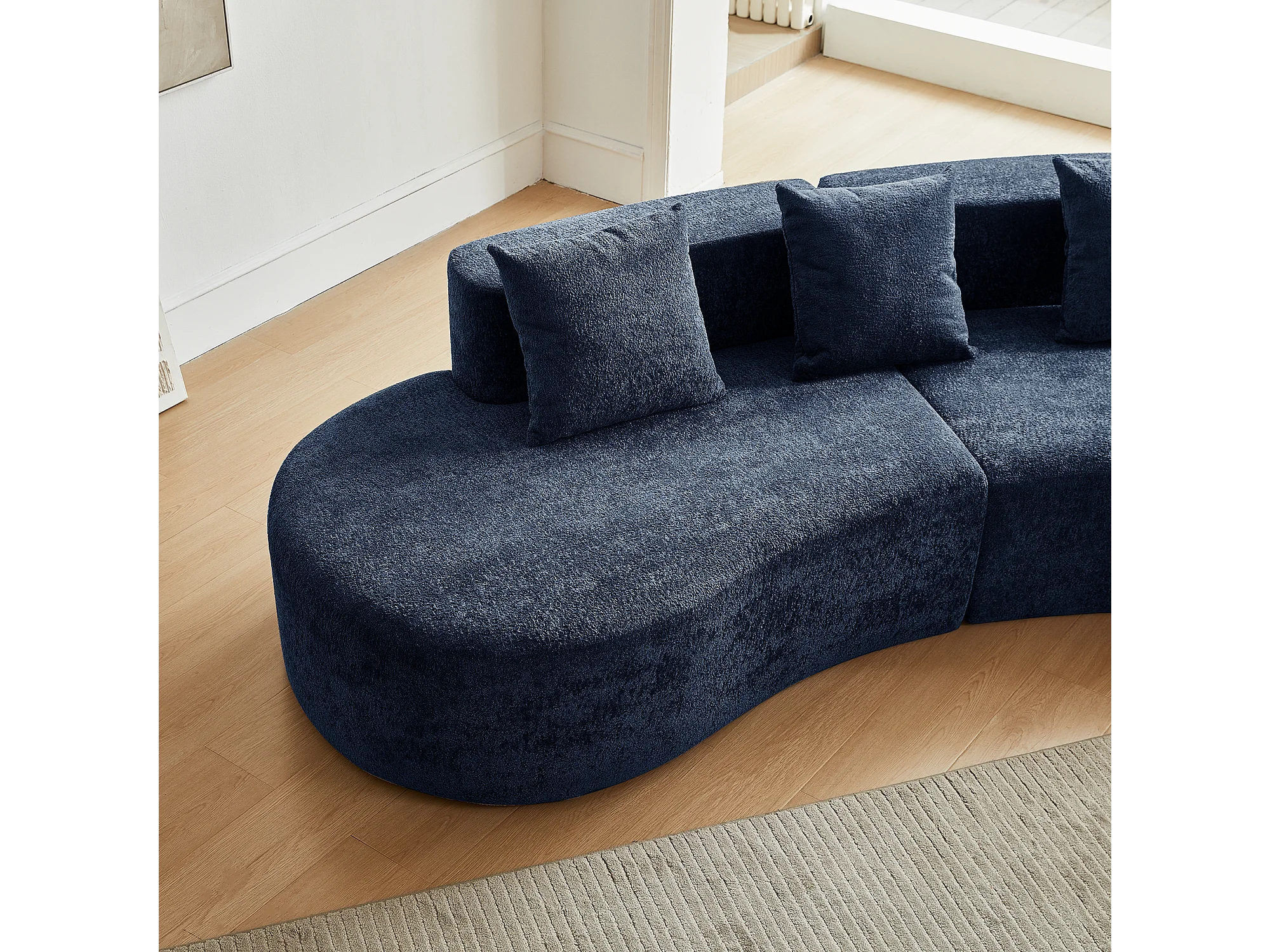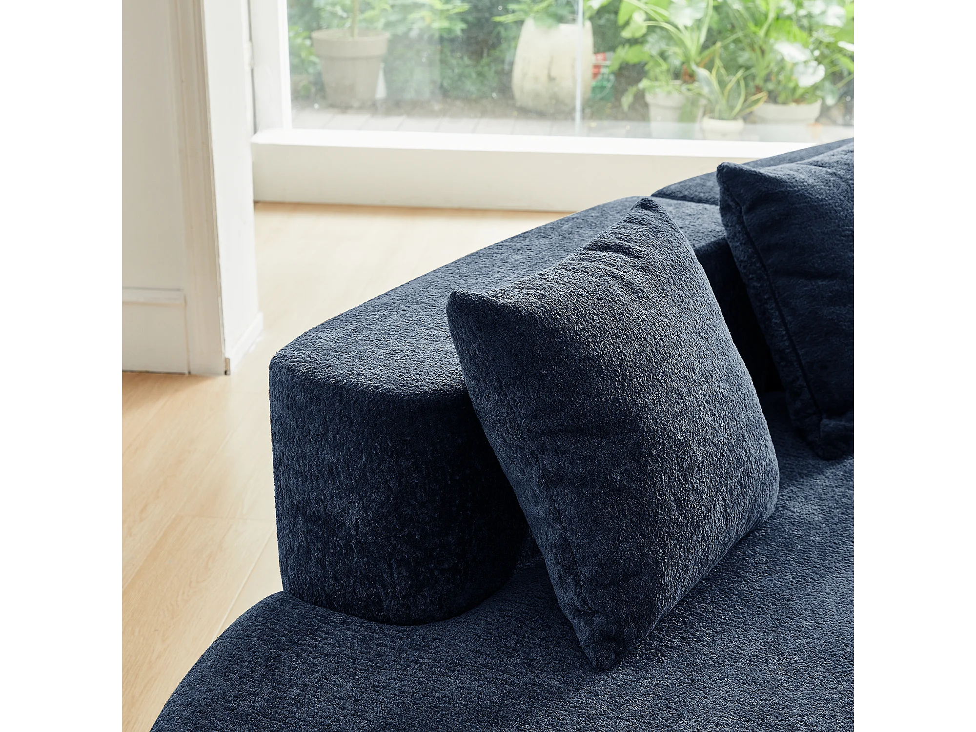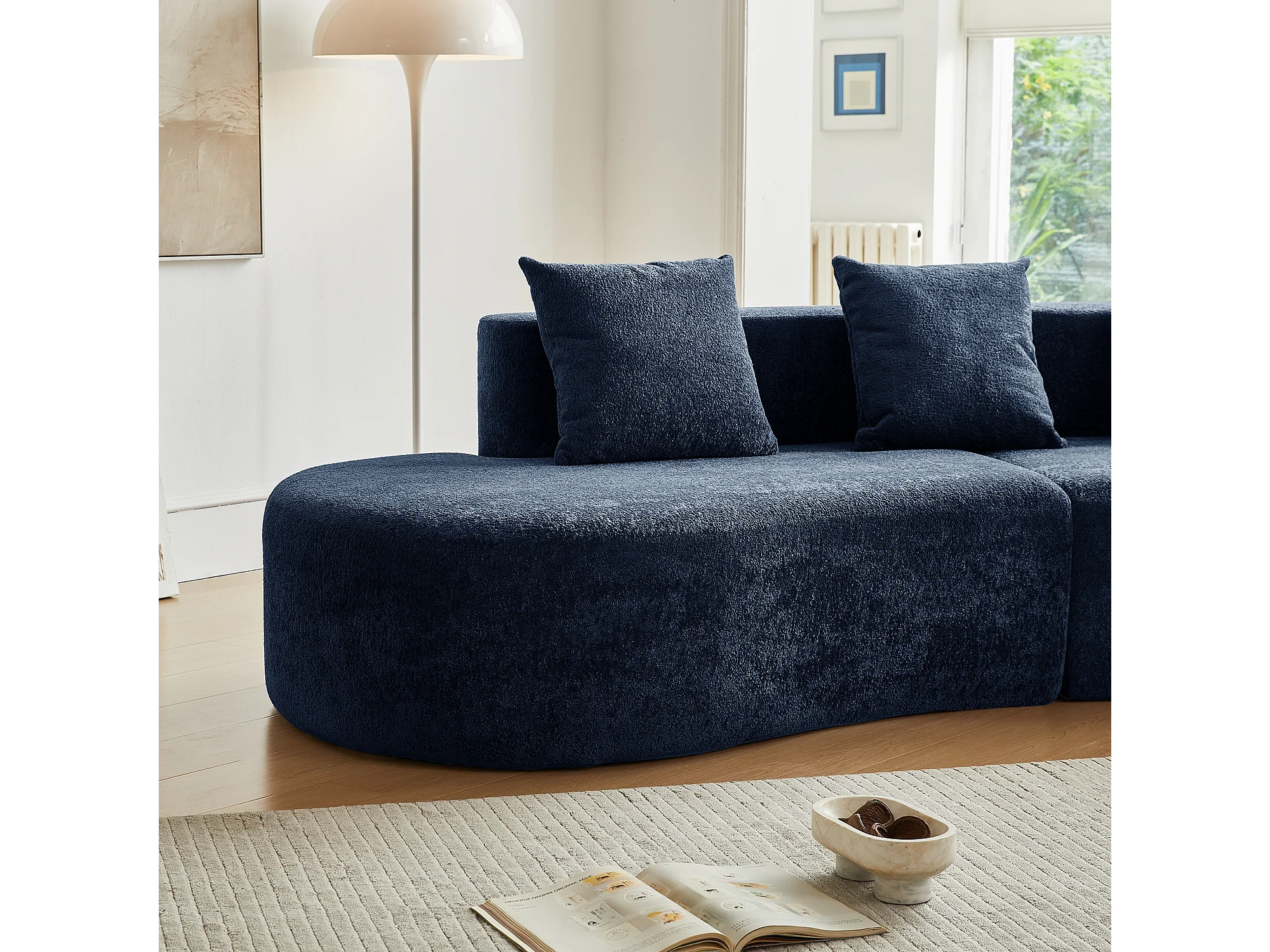 Divano angolare a 3 posti con cuscini - Design curvo - Tessuto in velluto blu