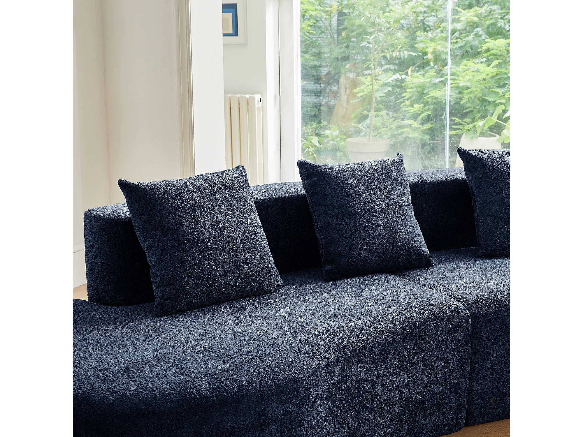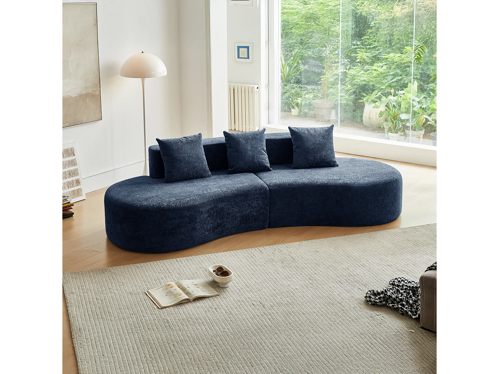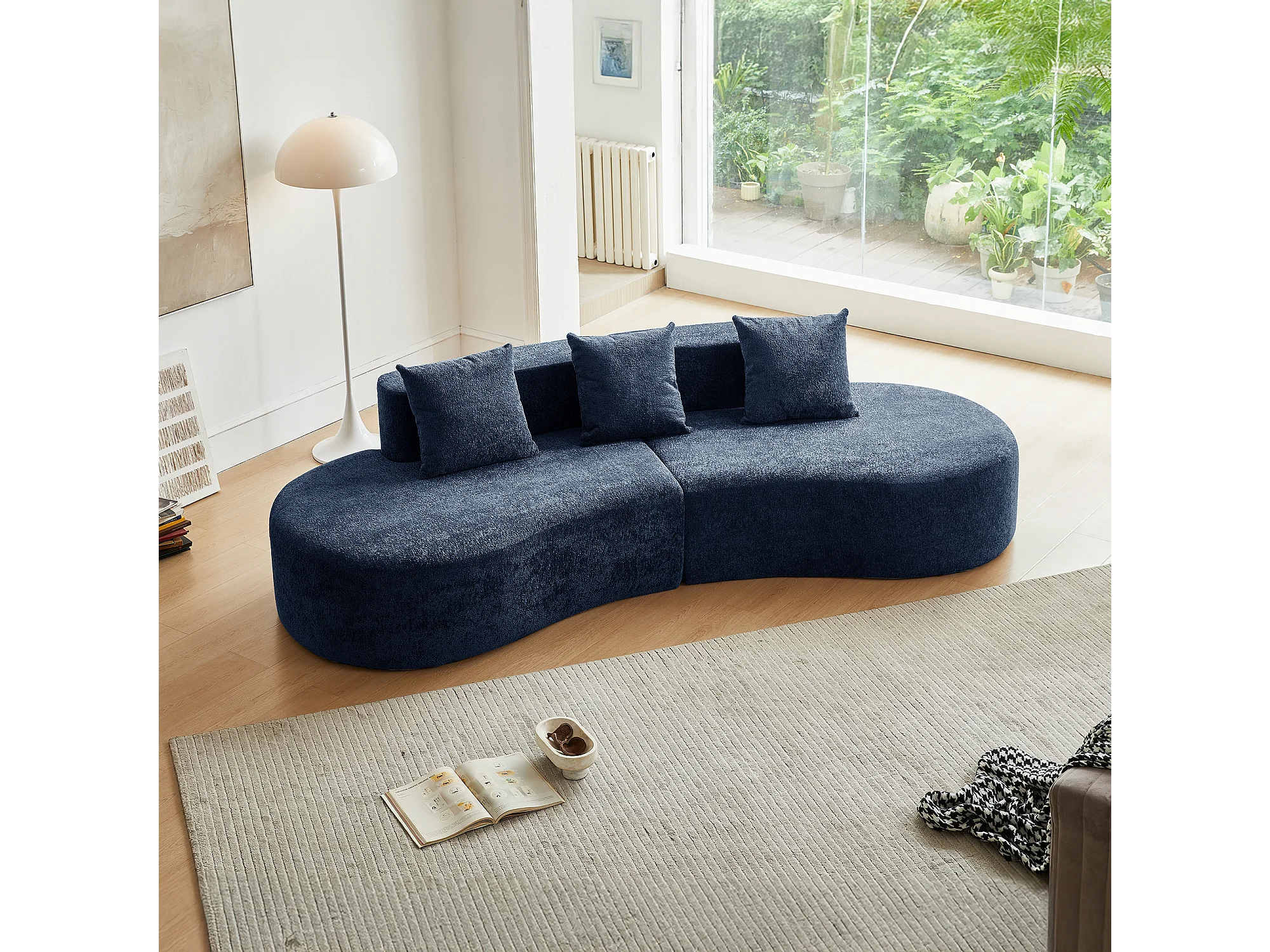 Divano angolare a 3 posti con cuscini - Design curvo - Tessuto in velluto blu