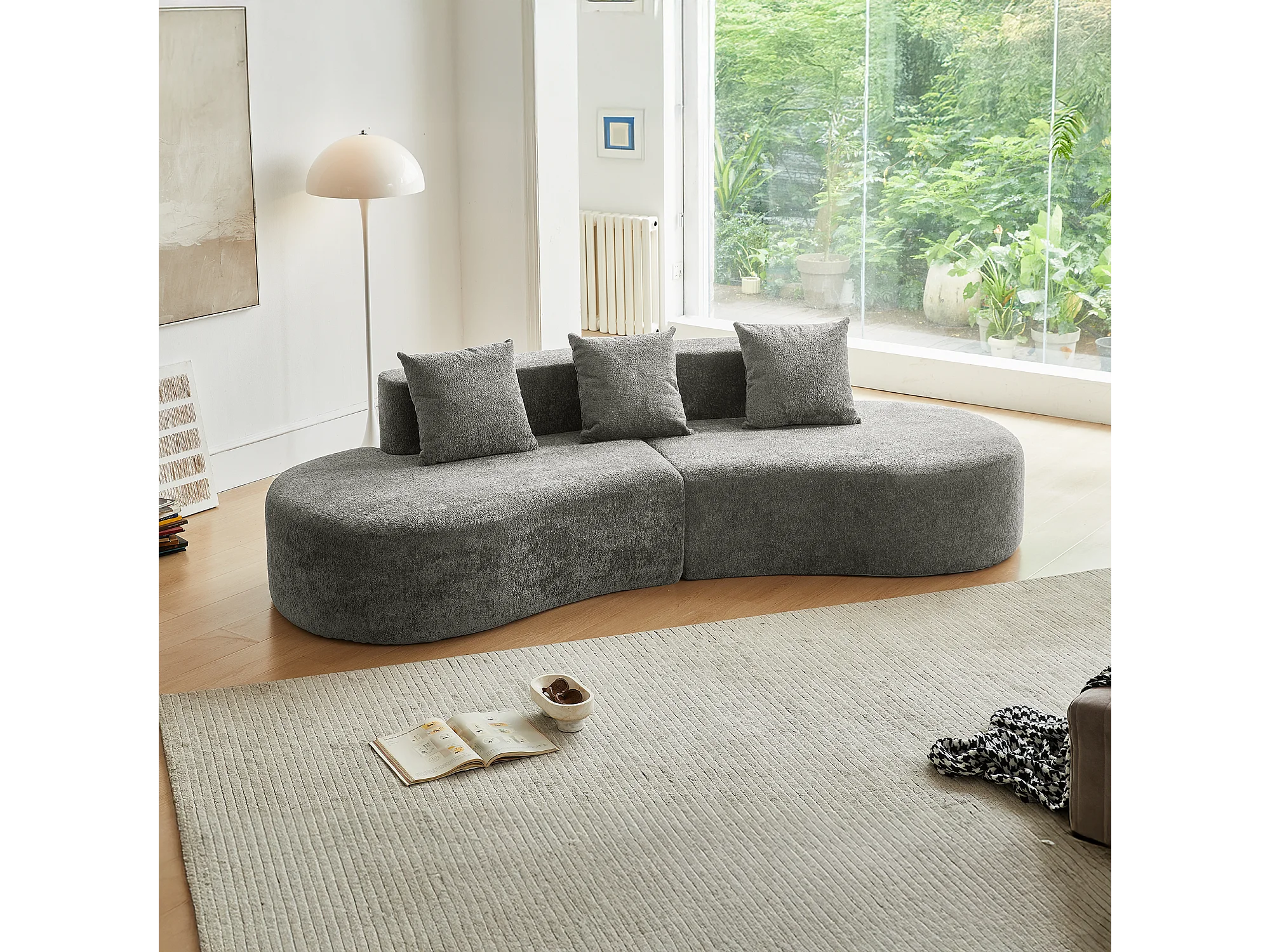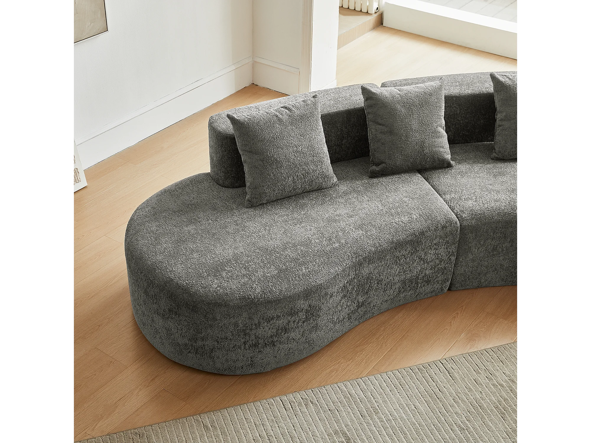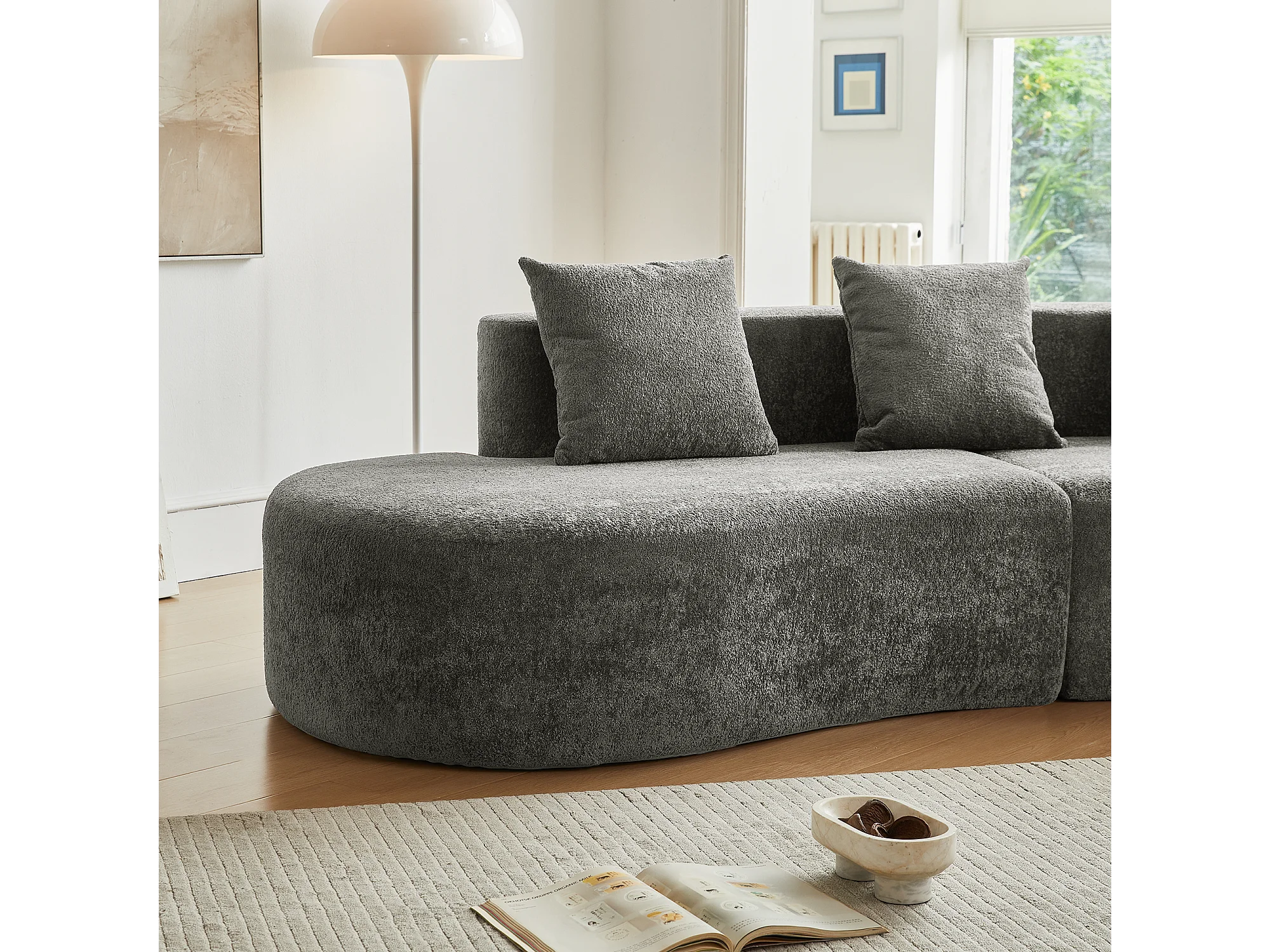 Divano angolare a 3 posti con cuscini - Design curvo - Tessuto in velluto grigio