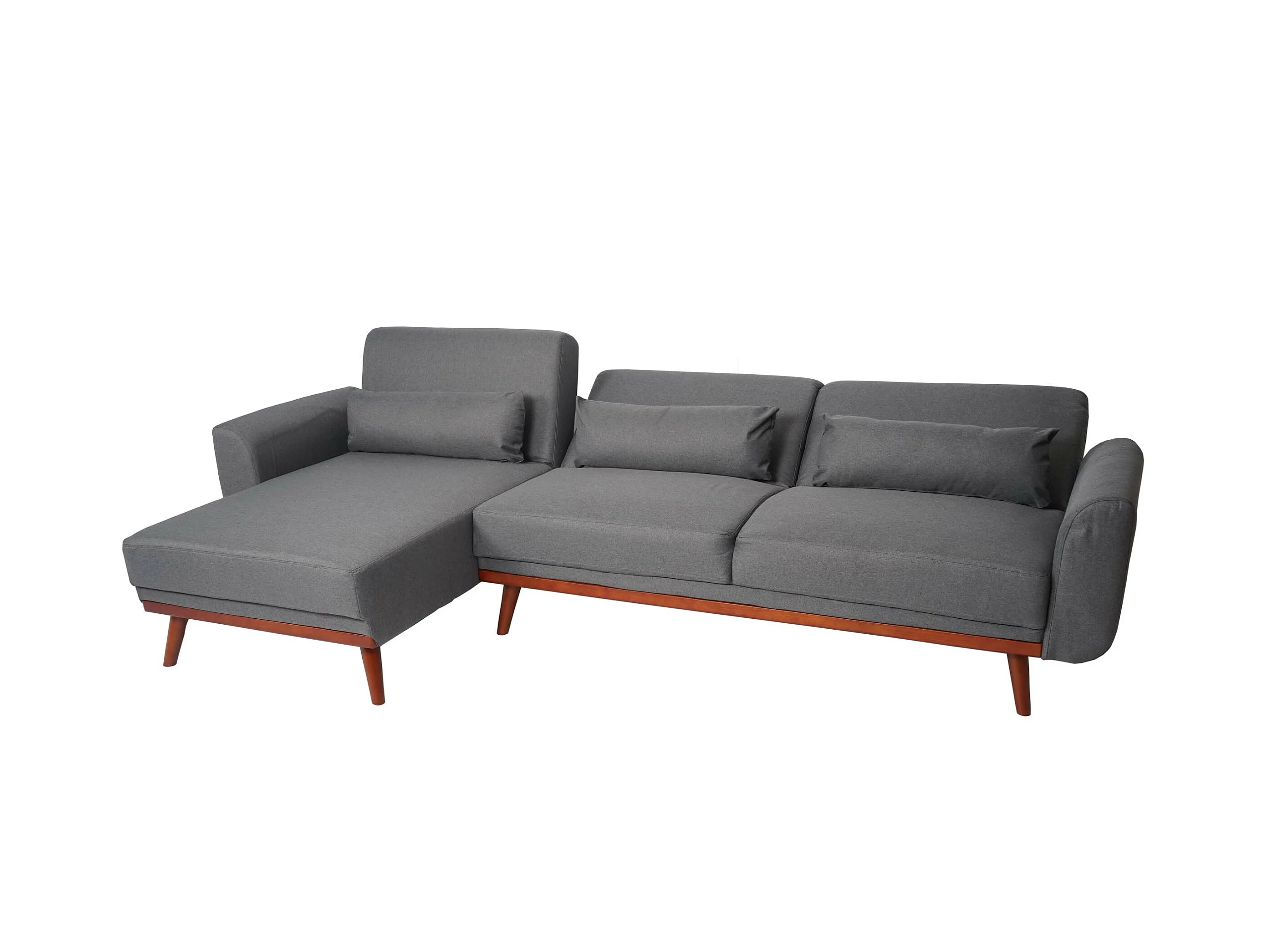 Divano letto sofà reclinabile MCW-K19 molle nosag legno ferro tessuto grigio chiaro