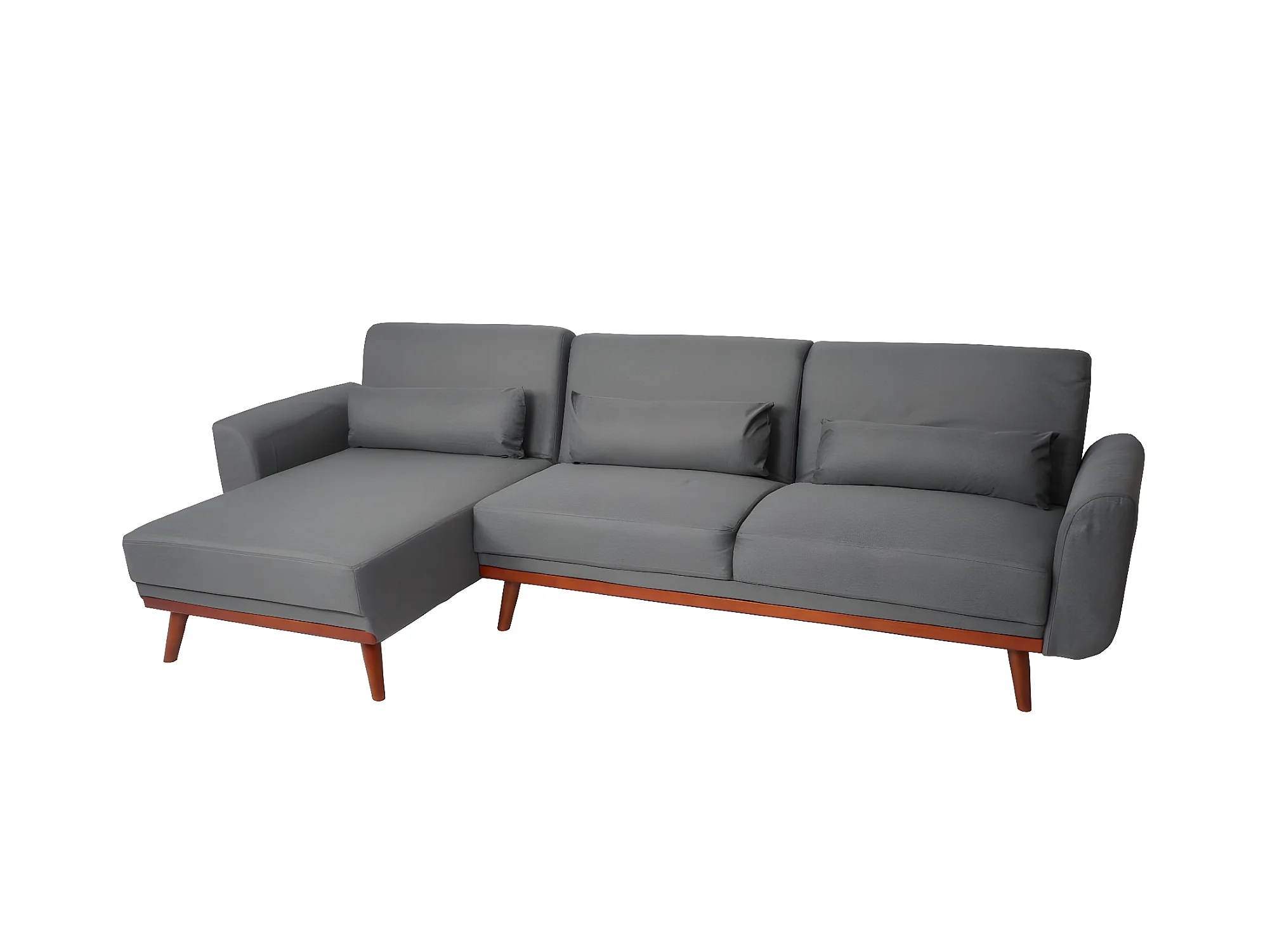 Divano angolare a L penisola 3 posti MCW-J20 tessuto grigio antracite