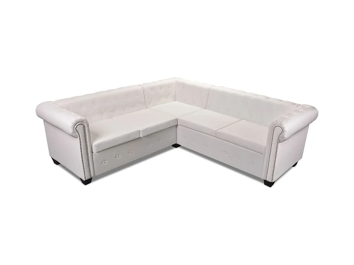 Divano angolare Chesterfield 5 posti in similpelle bianca 02_0020233