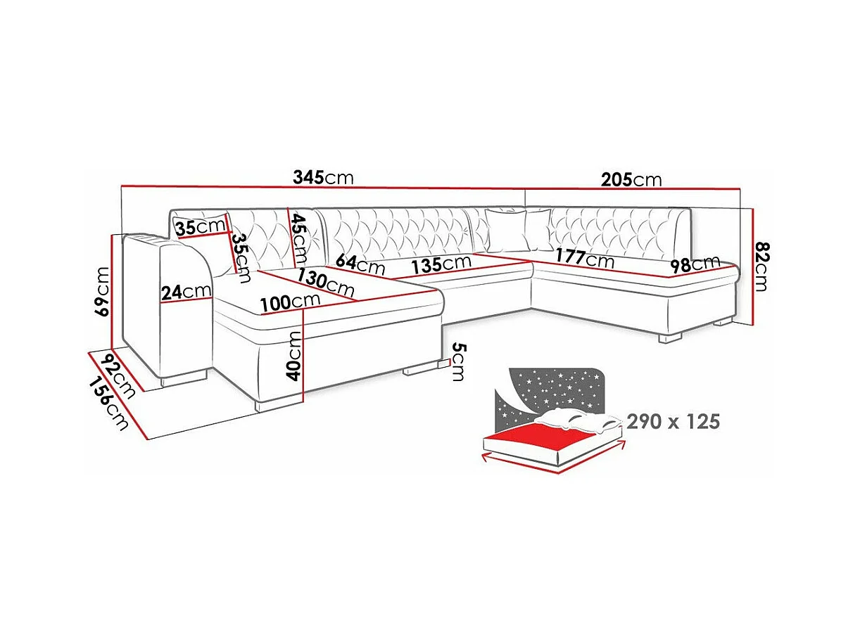 Divano angolare Comfivo 269, Turchese, Con, 345x205x82cm