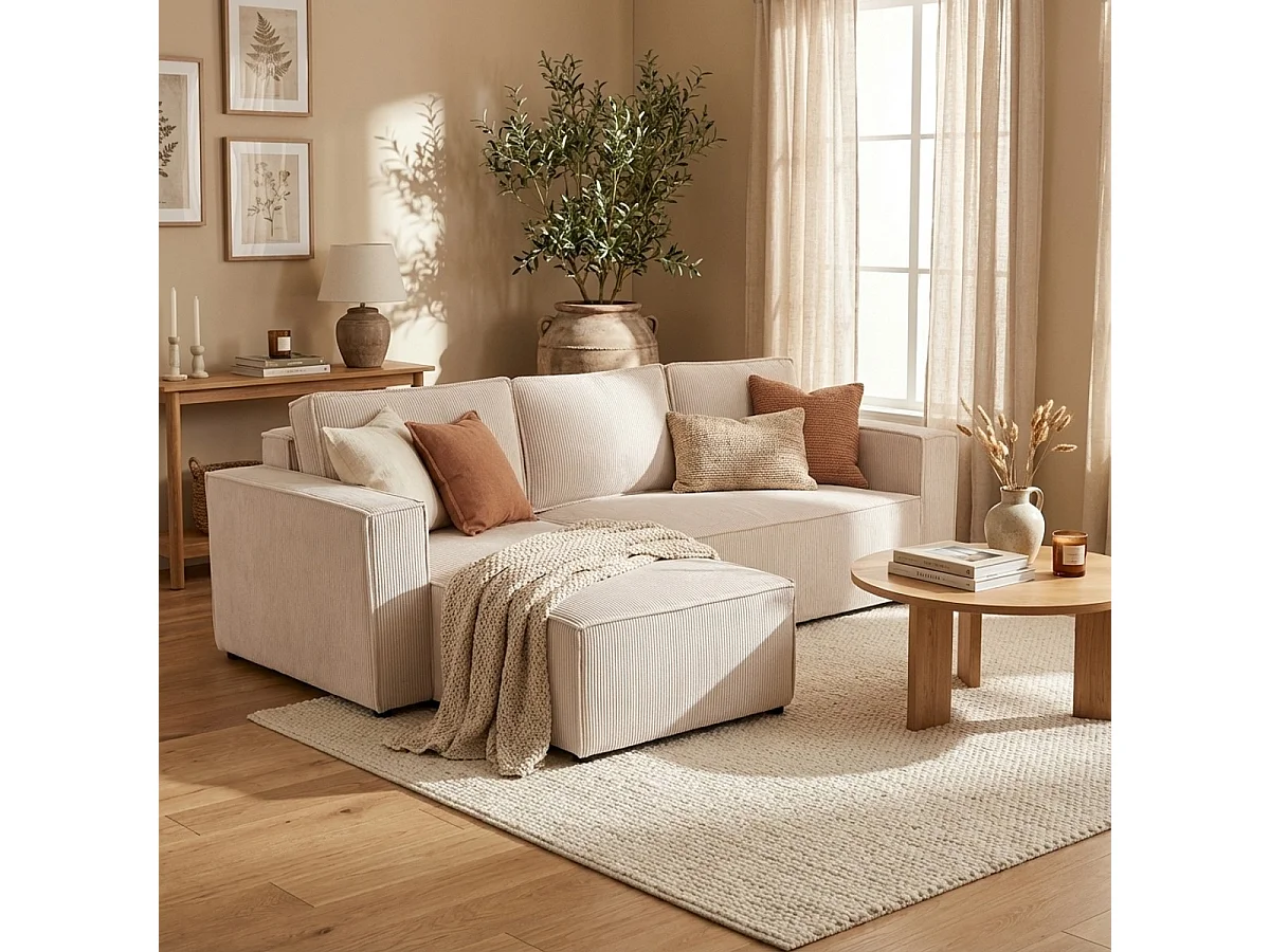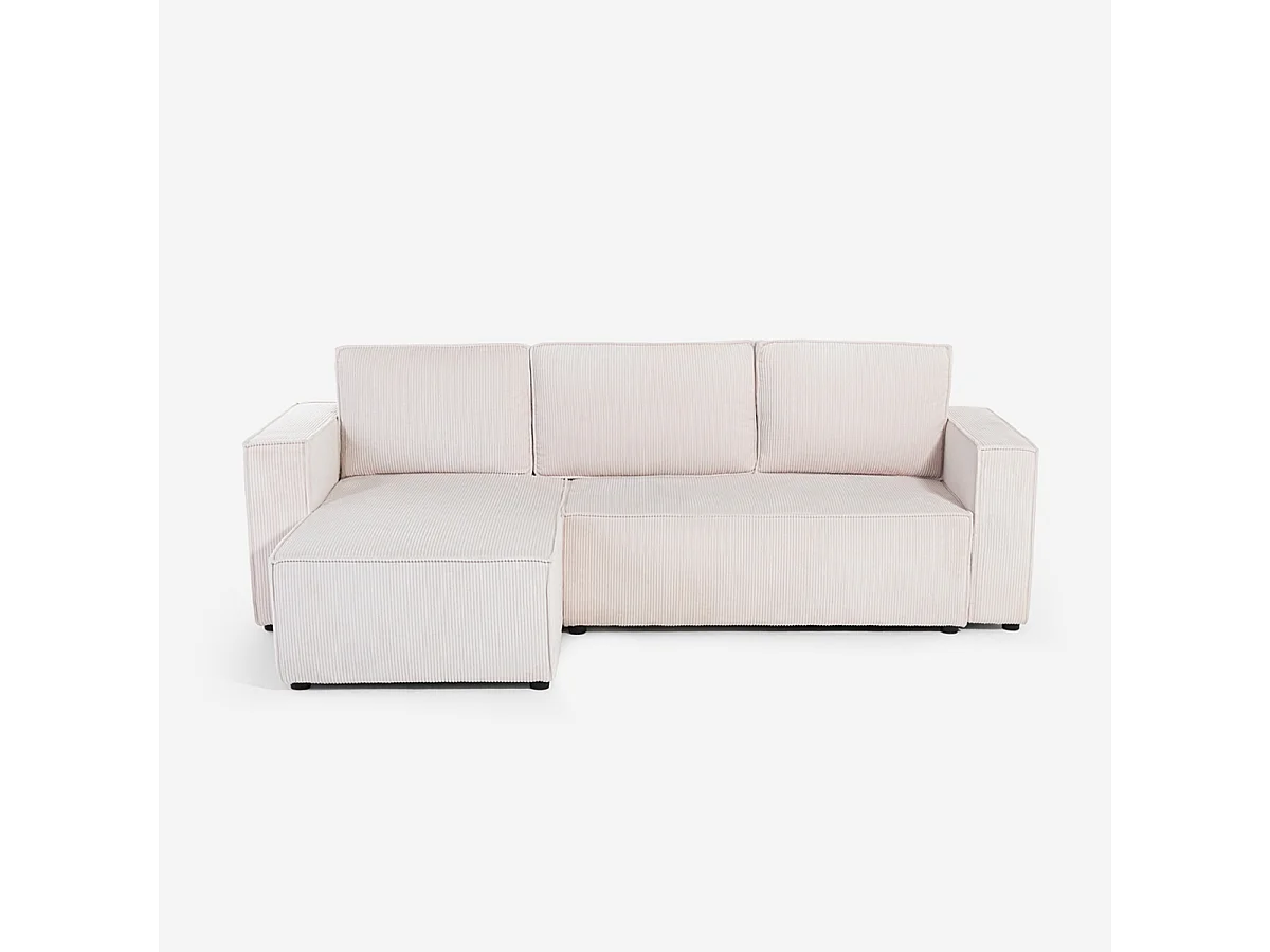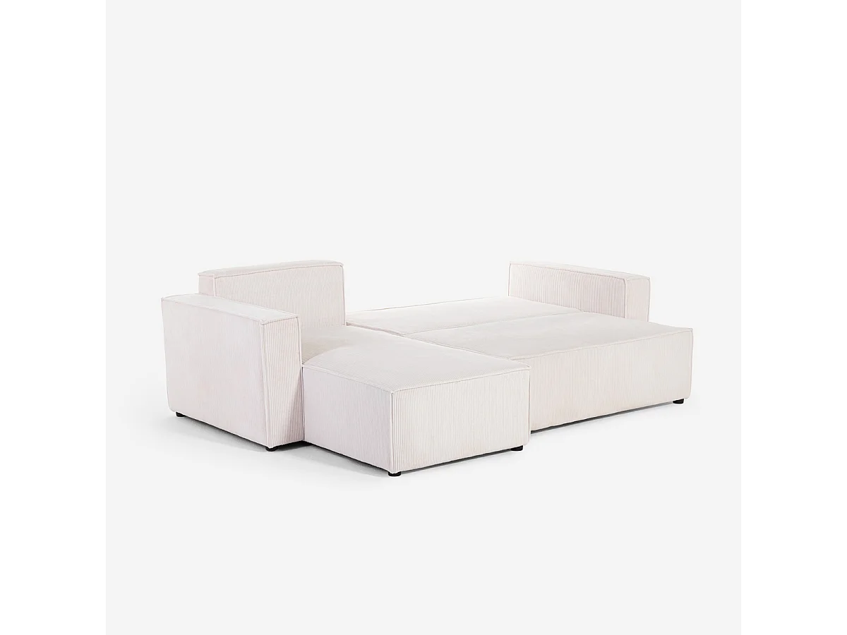 Divano angolare con penisola e letto estraibile in tessuto a coste Leka - Bianco