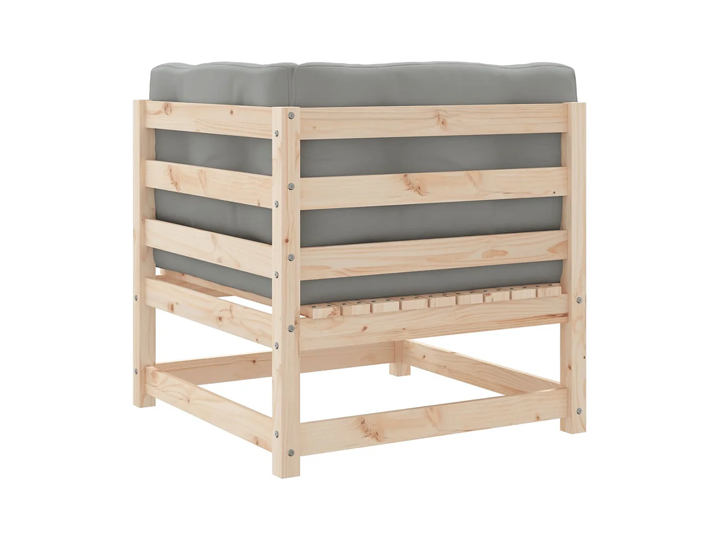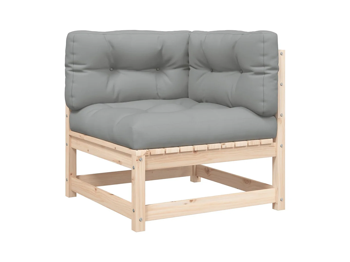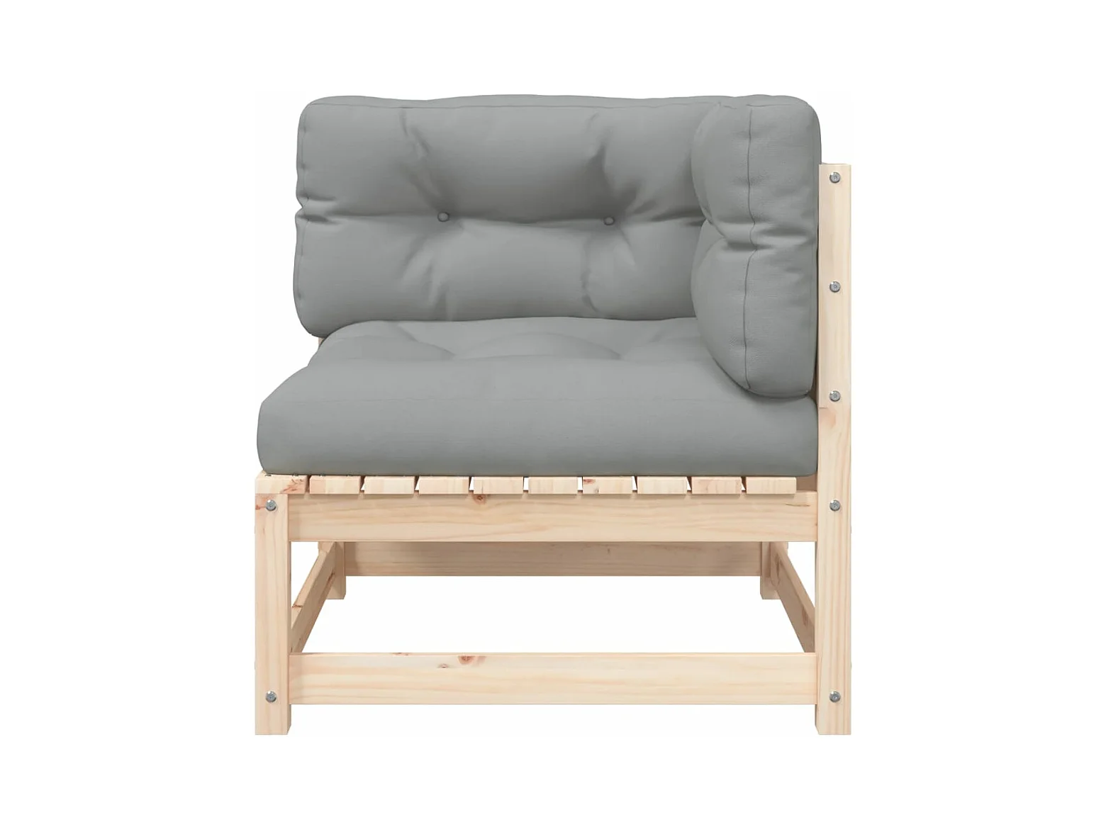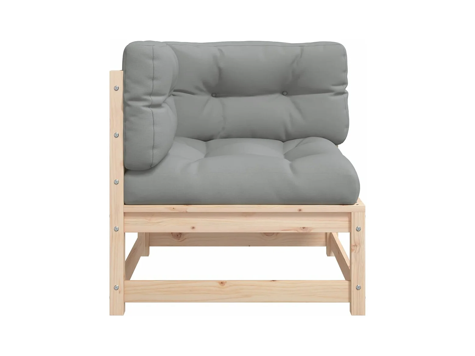 Divano ad angolo da giardino con cuscini in legno massello di pino