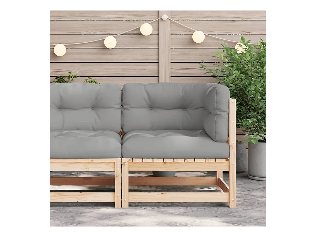 Divani da giardino senza braccioli, cuscini, 2 pezzi, in legno di pino massiccio