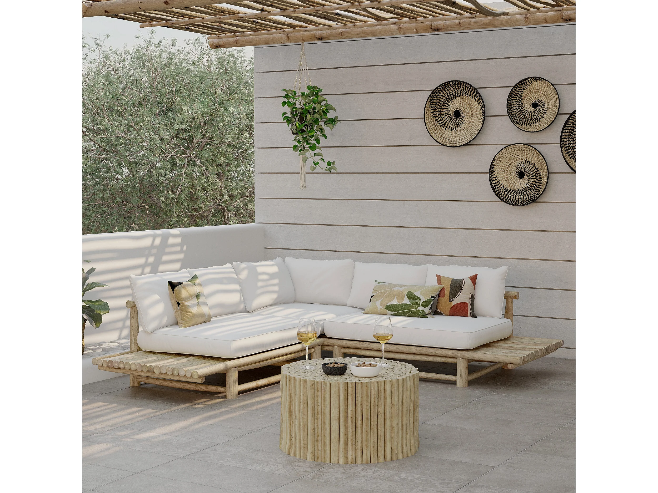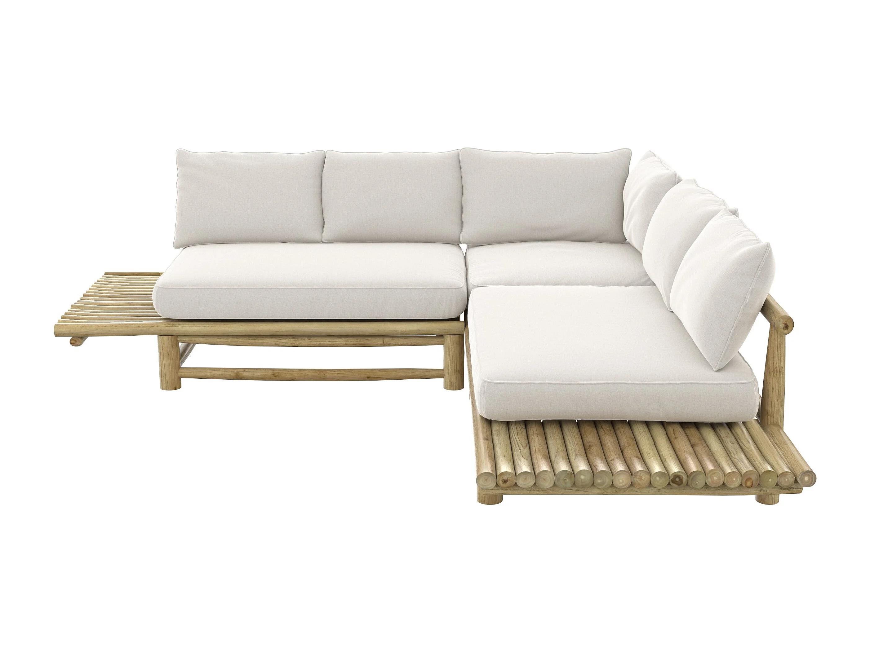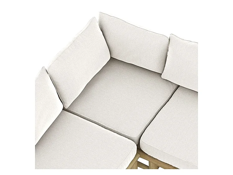 Divano angolare da giardino 4 posti in teak e cuscini bianchi - Sunny