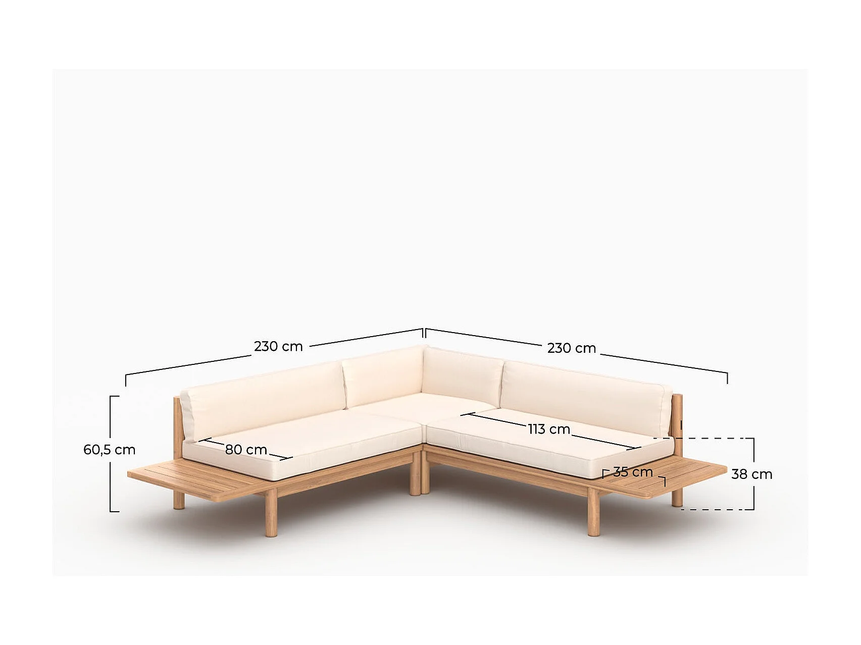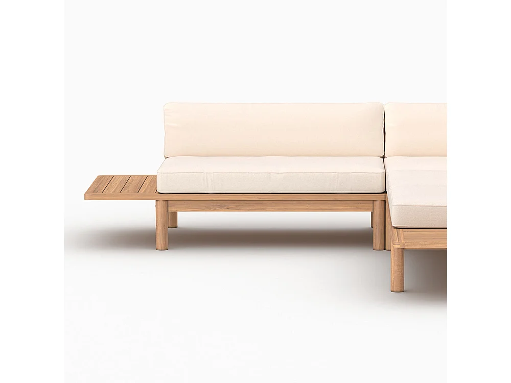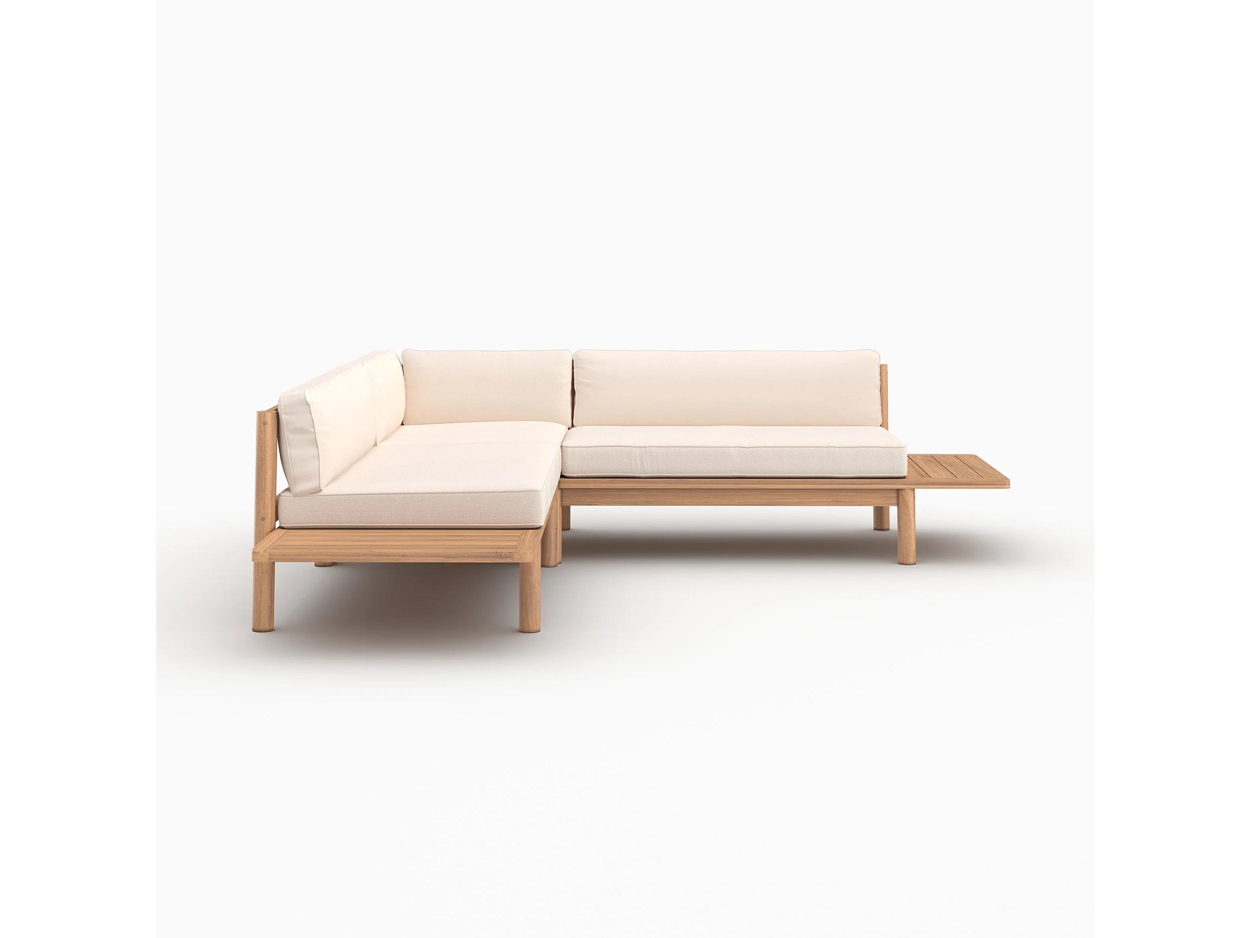 Divano angolare da giardino in teak massello e cuscini bianchi 4 posti - Nadila