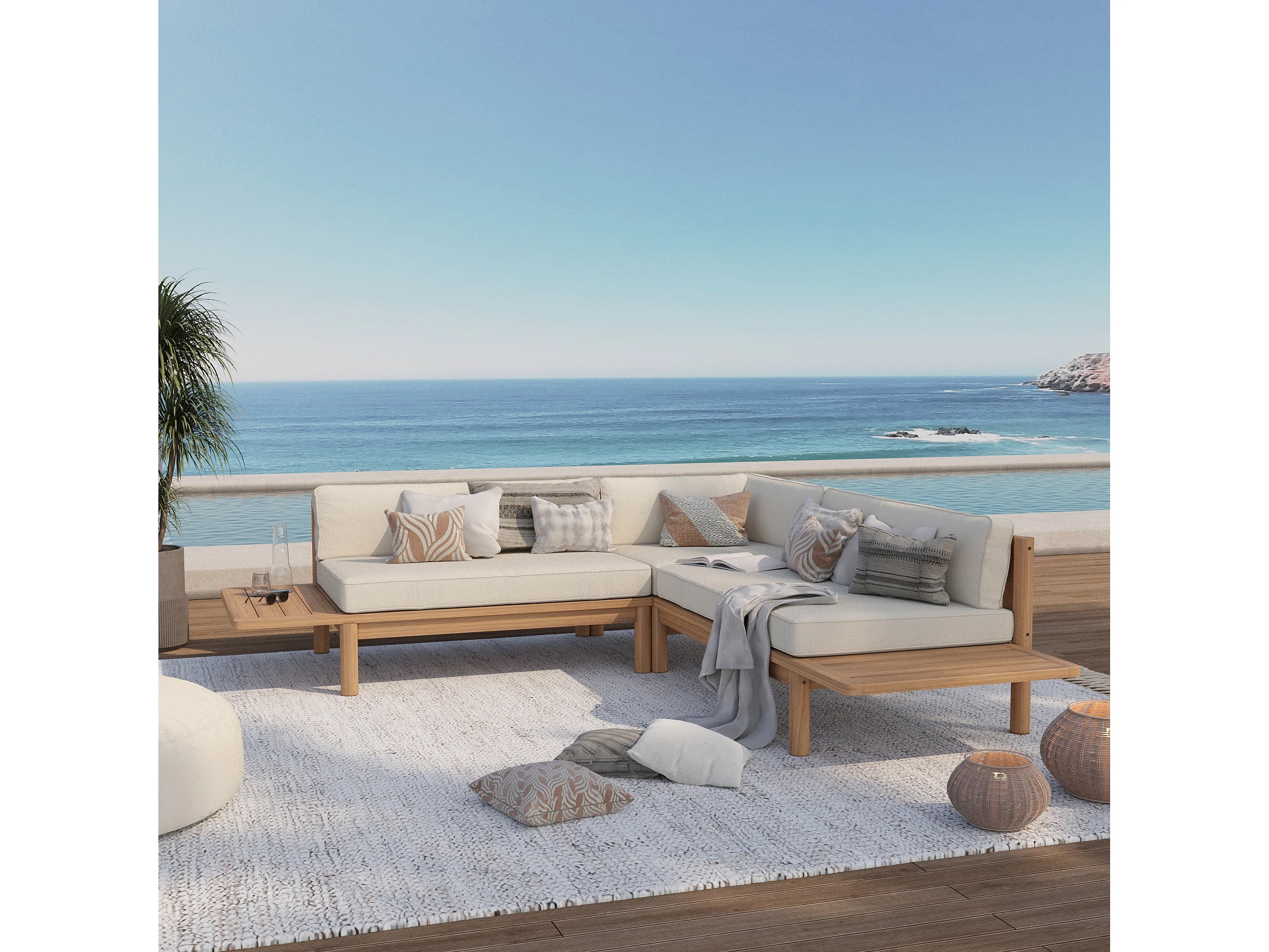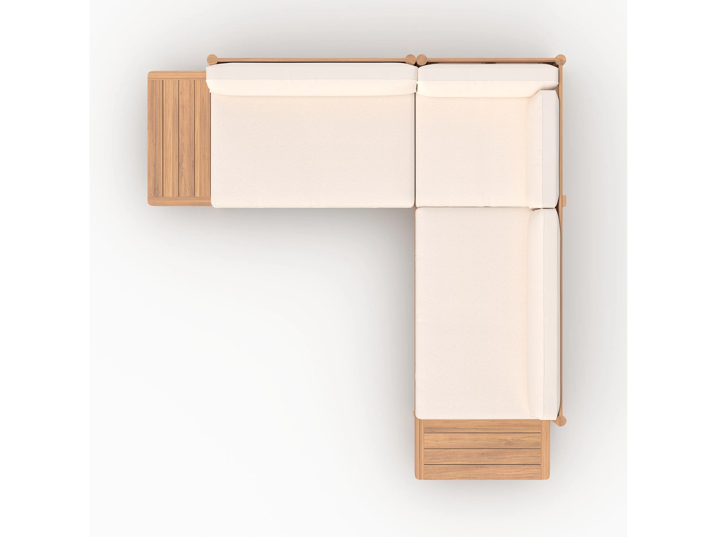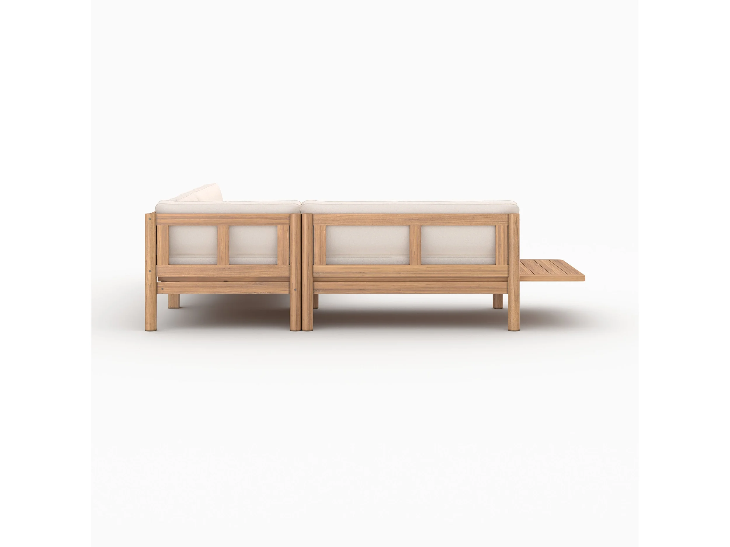 Divano angolare da giardino in teak massello e cuscini bianchi 4 posti - Nadila