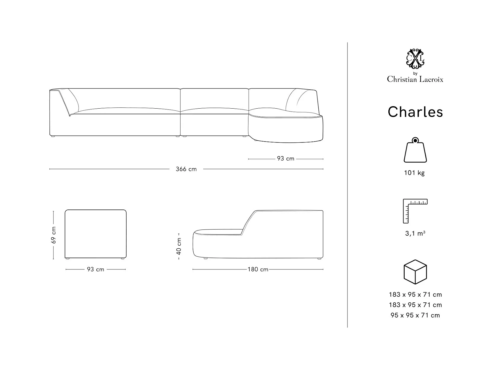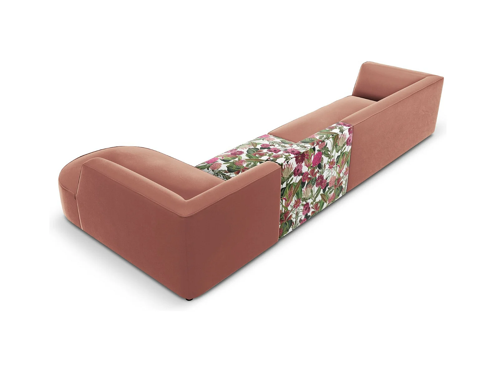 CXL by Christian Lacroix - Divano panoramico destro "Charles" 7 posti in velluto motivo di rose da giardino - 366x273x69cm
