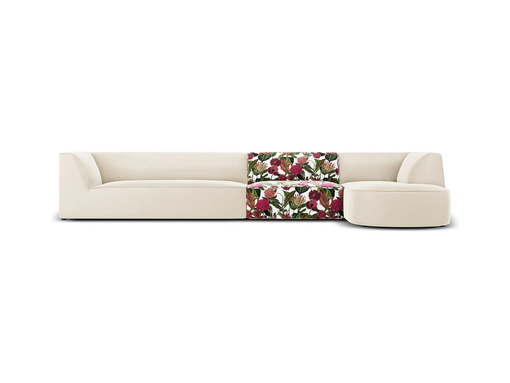 CXL by Christian Lacroix - Divano panoramico destro "Charles" 7 posti in velluto motivo di rose da giardino - 366x273x69cm