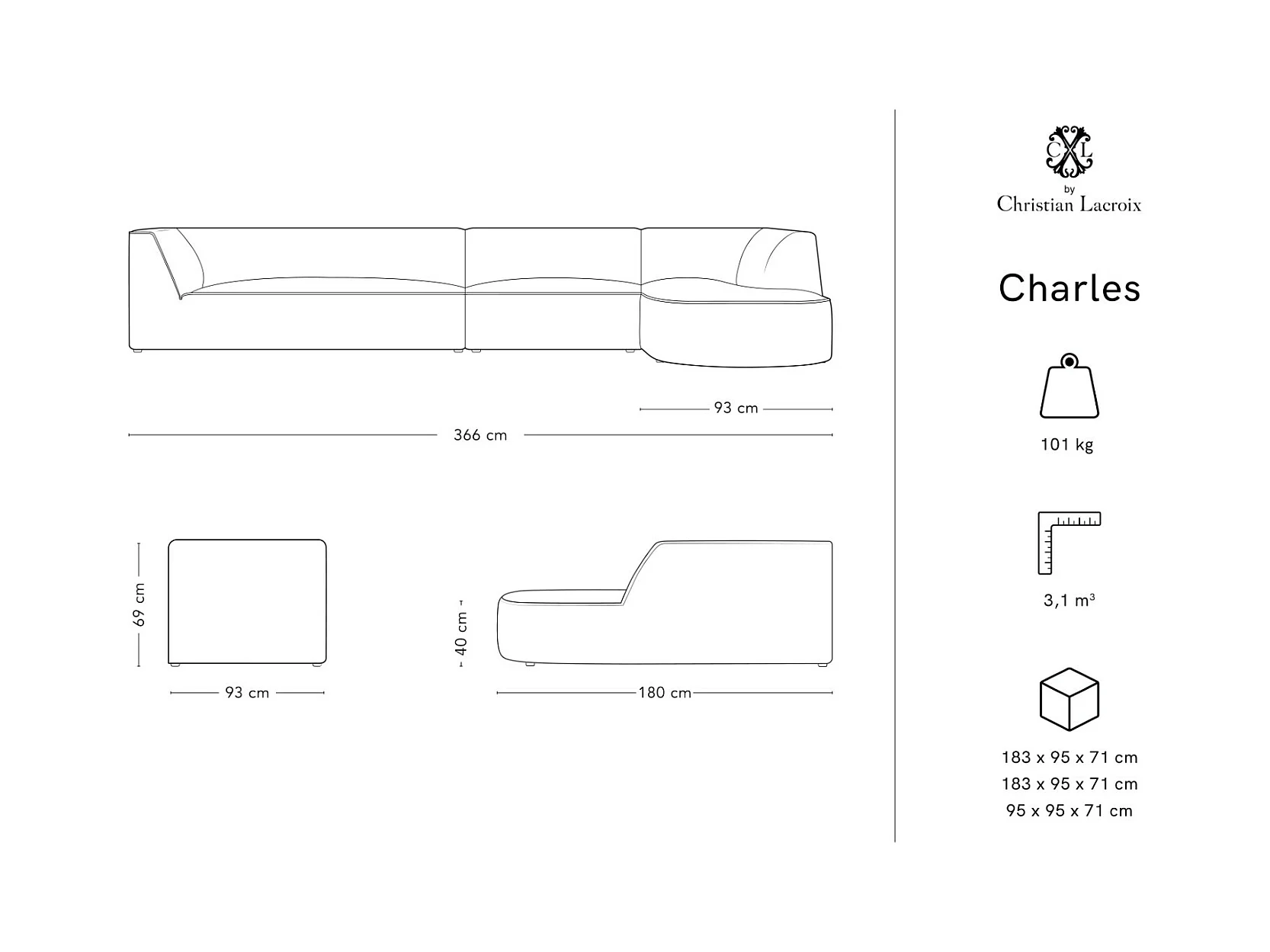 CXL by Christian Lacroix - Divano angolare destro "Charles" 5 posti in velluto motivo di rose da giardino - 366x180x69cm