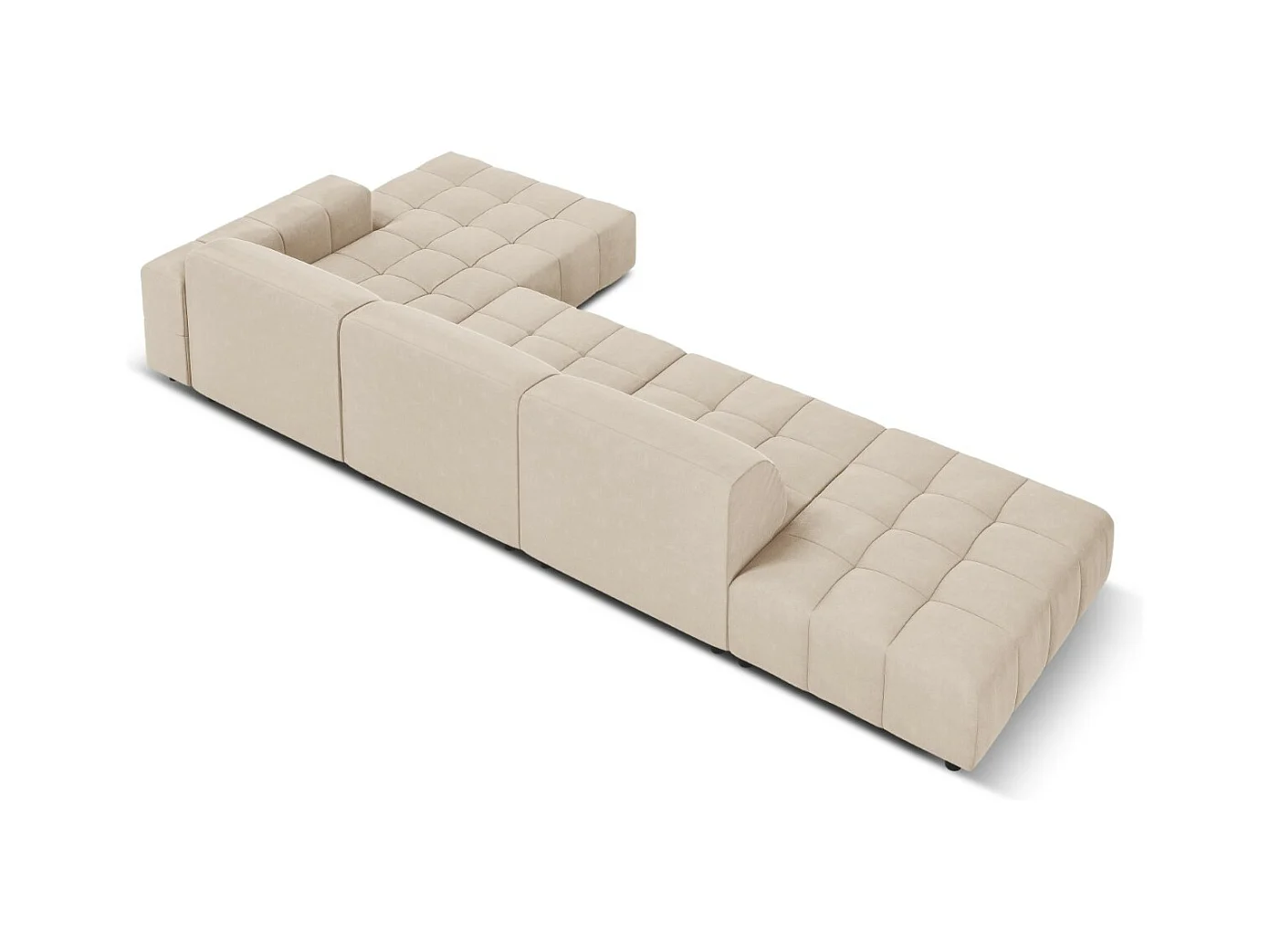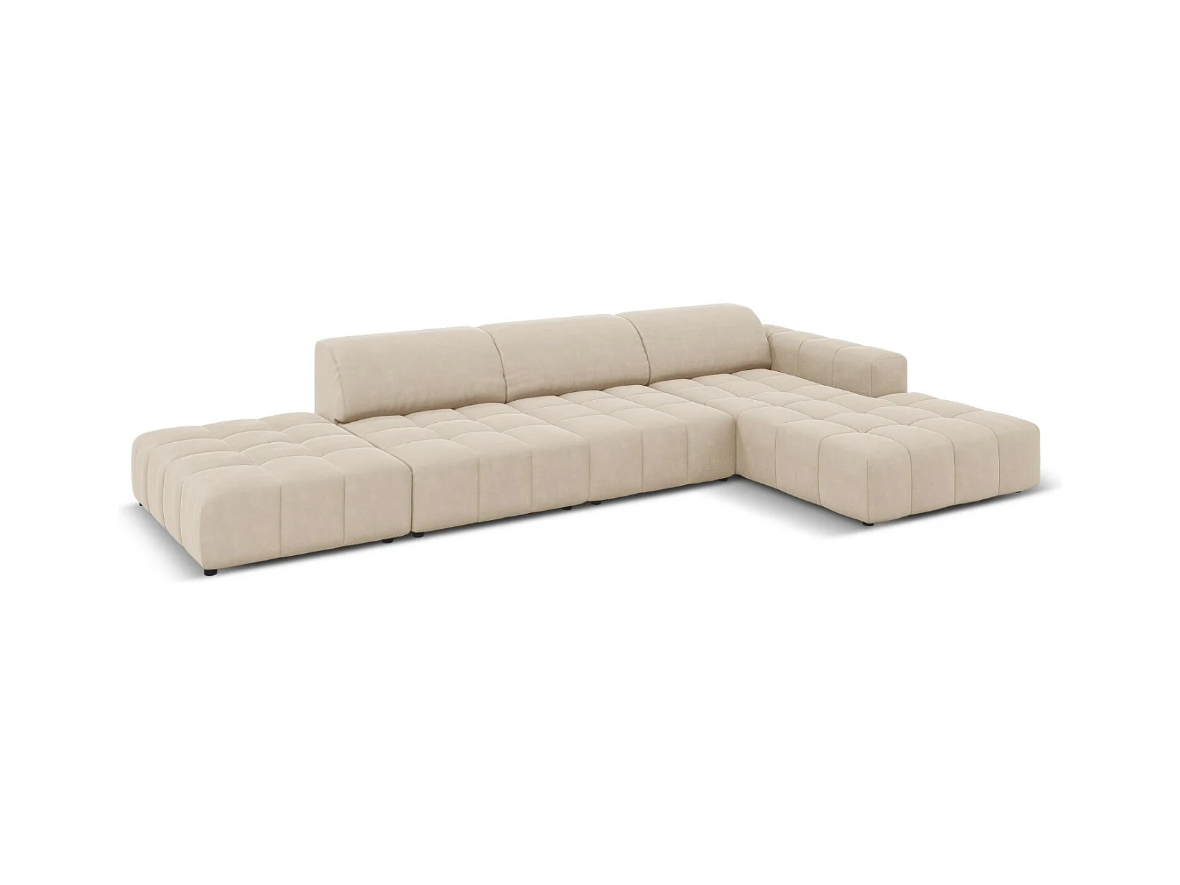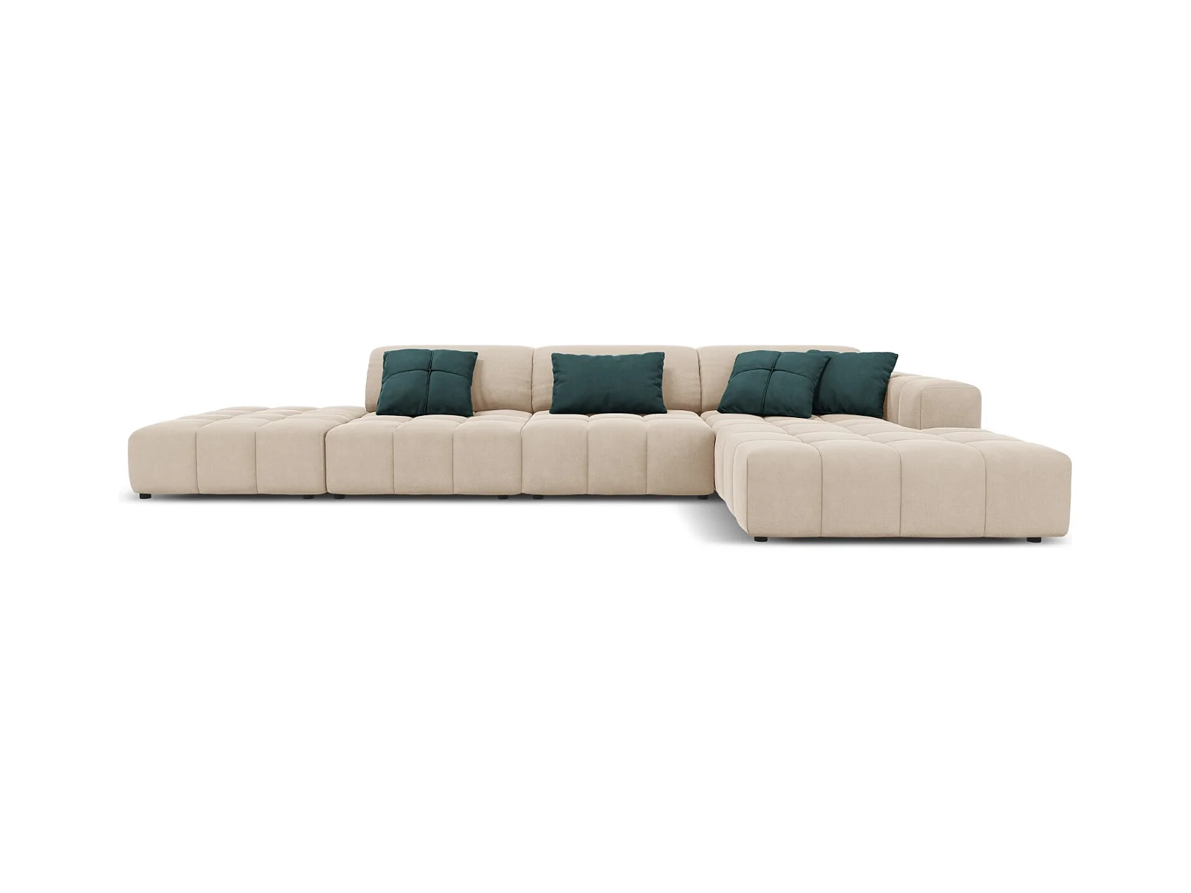 Cosmopolitan Design - Divano angolare destro "Bali" 5 posti in velluto beige - 293x185x75cm