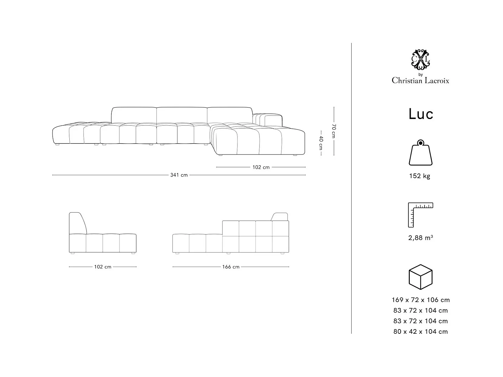 CXL by Christian Lacroix - Divano angolare destro "Luc" 5 posti in velluto beige chiaro - 341x166x70cm