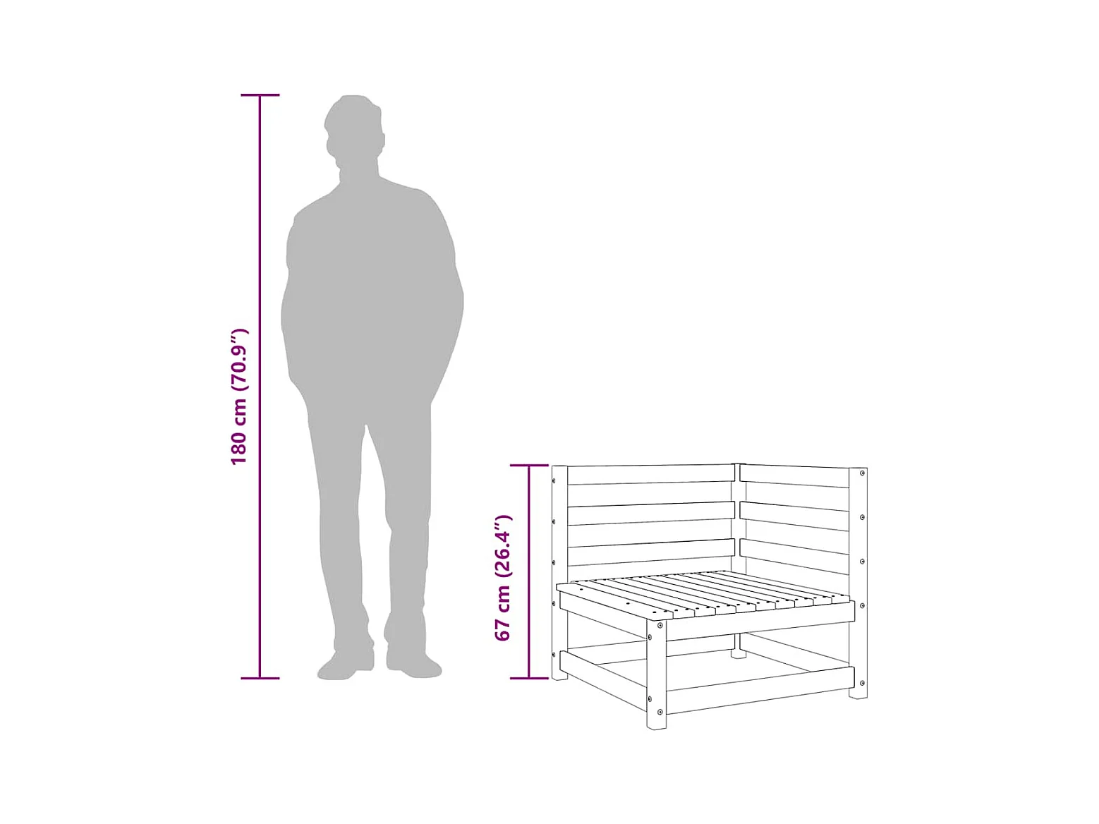 Divano Angolare Giardino Marrone Cera 70x70x67cm Massello Pino