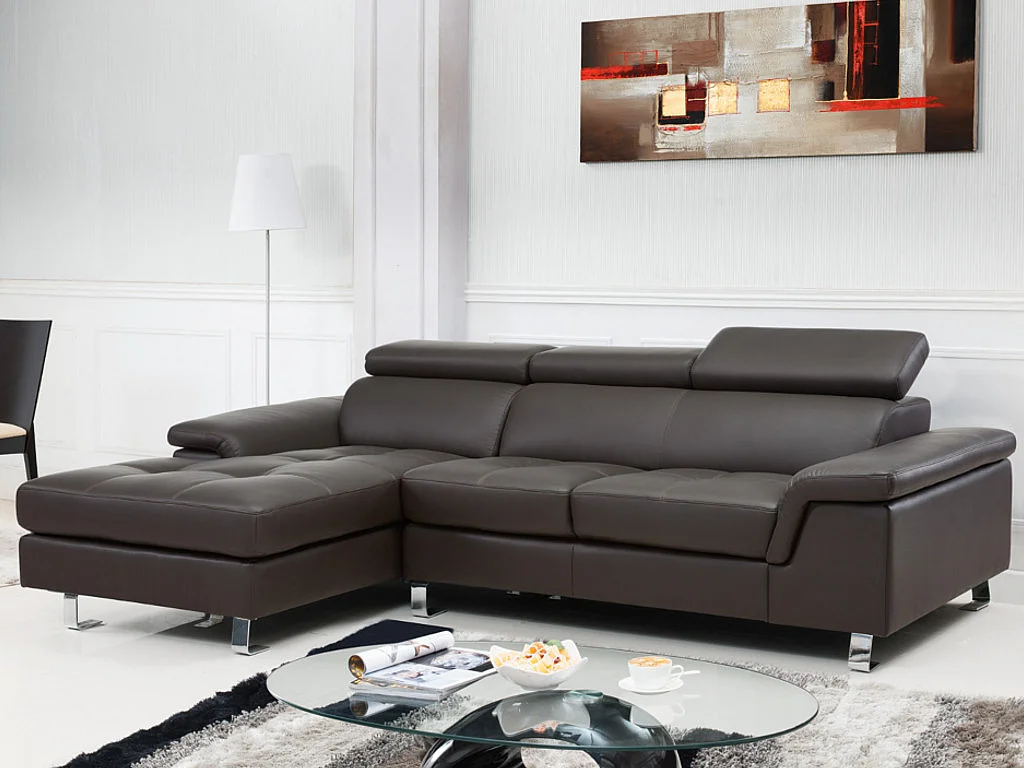 Divano angolare in pelle Marrone - Angolo a sinistra - MISHIMA