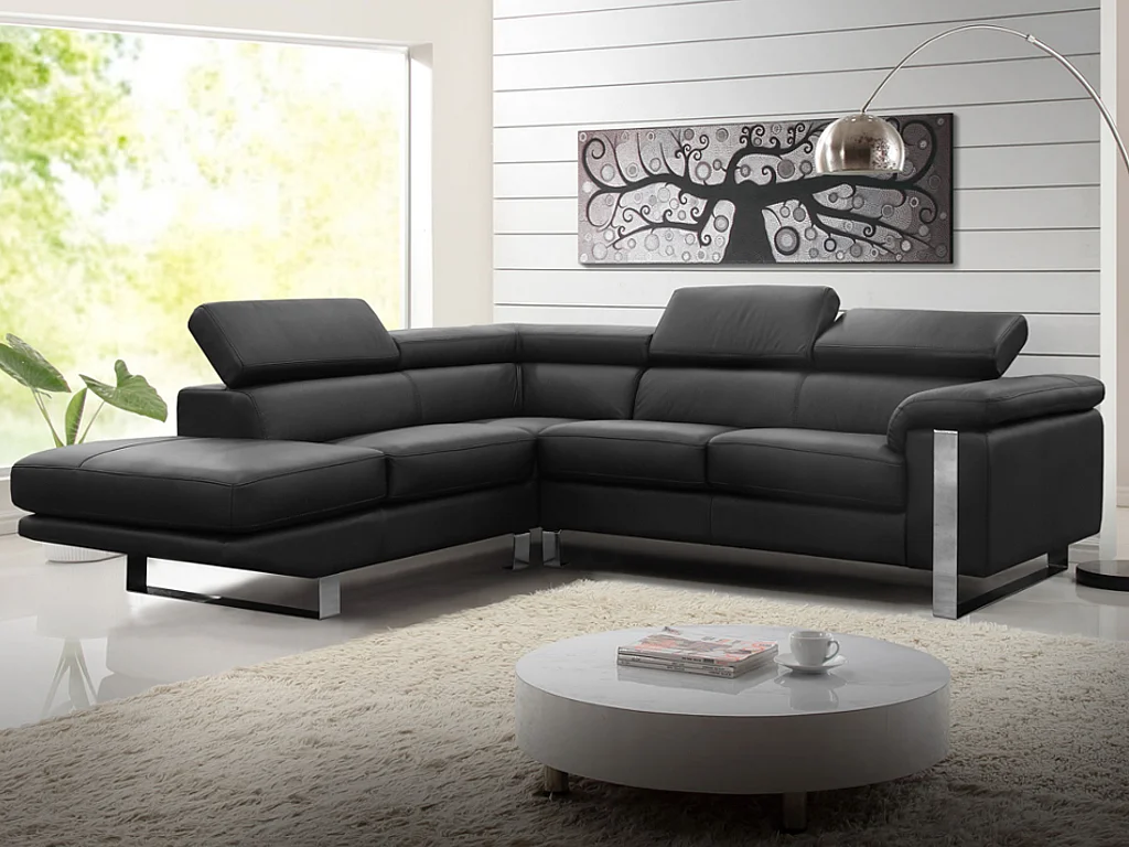 Divano angolare in pelle Nero - Angolo a sinistra - MYSTIQUE