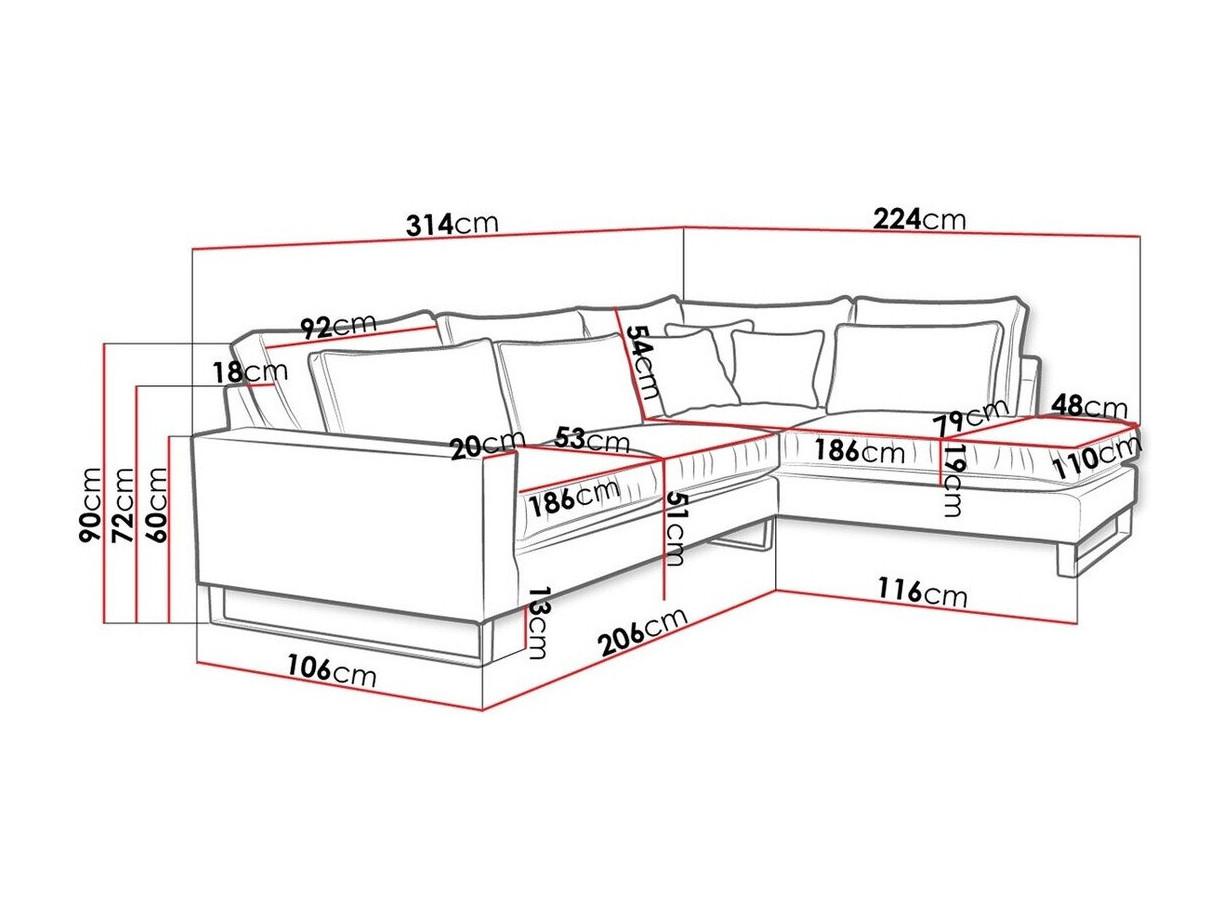 Divano angolare Kingsport 111, Blu, Senza, 314x224x90cm