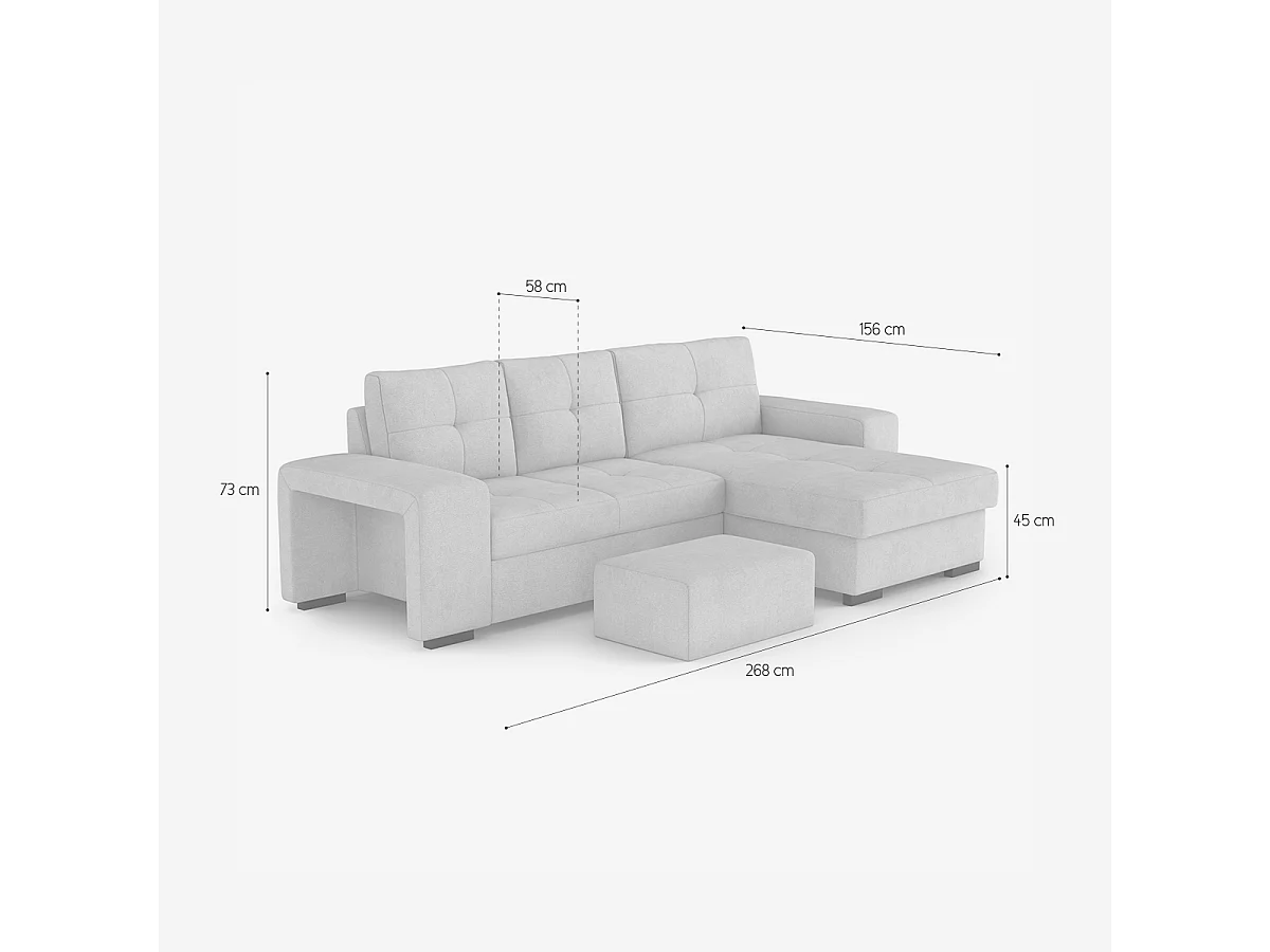 Divano angolare moderno 3 posti con penisola destra e pouf Vilo - Nero