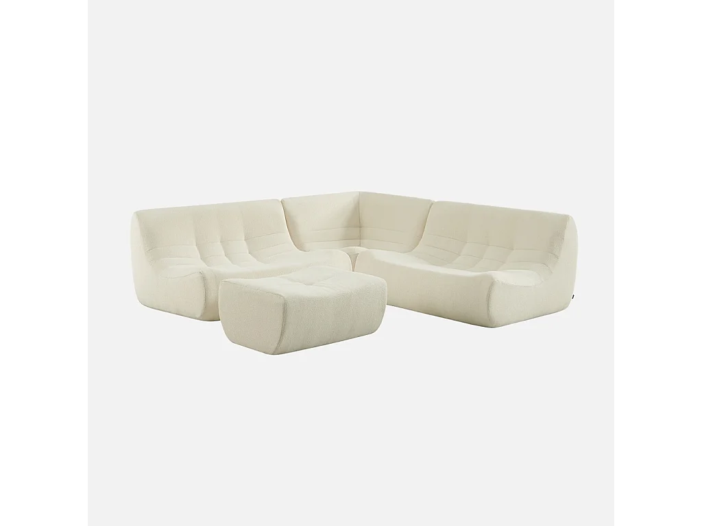 Divano angolare modulare con poggiapiedi in bouclé testurizzato, 5