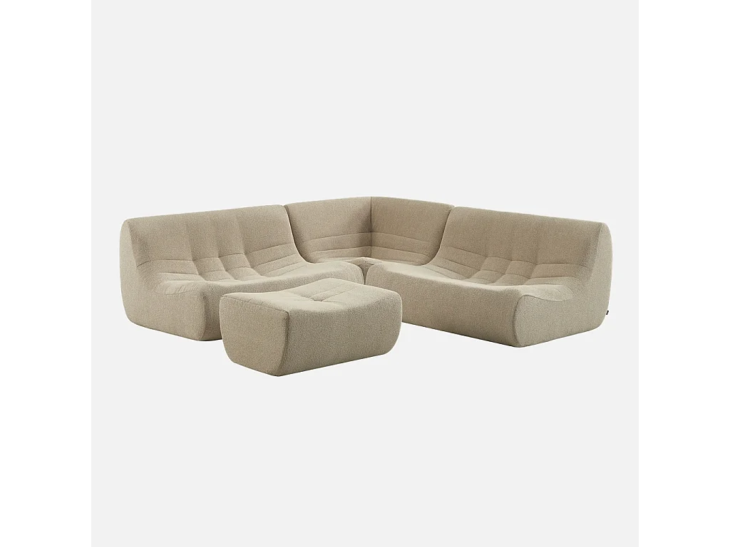 Divano angolare modulare con poggiapiedi in bouclé testurizzato, 5