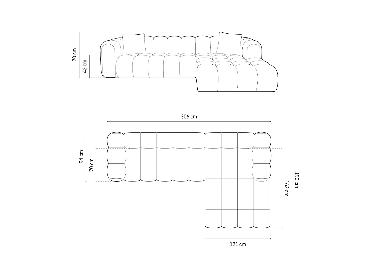 CXL by Christian Lacroix - Divano angolare modulare destro "Clotilde" 4 posti in tessuto strutturato nero - 306x190x70cm
