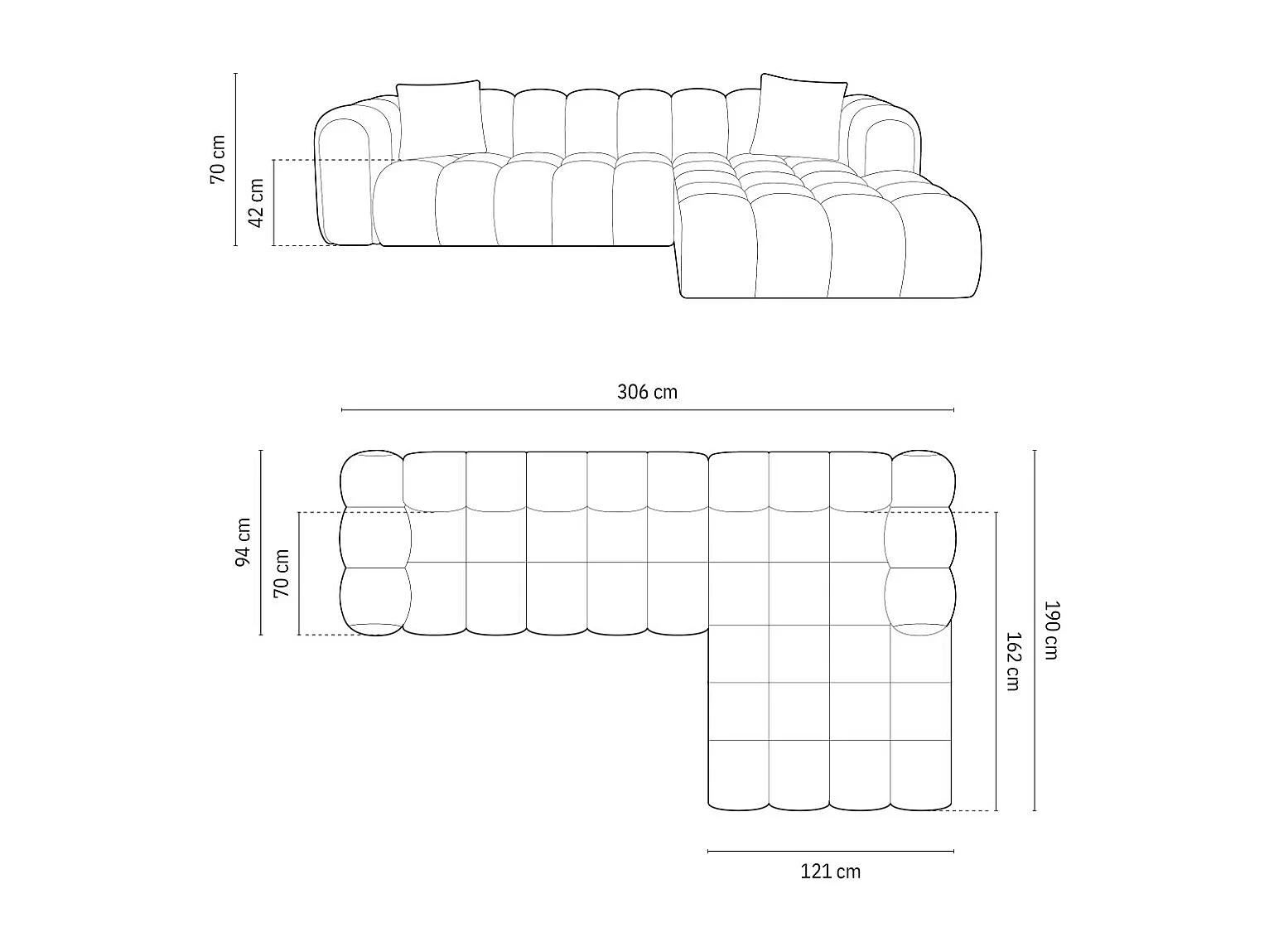 CXL by Christian Lacroix - Divano angolare modulare destro "Clotilde" 4 posti in tessuto strutturato verde mare - 306x190x70cm