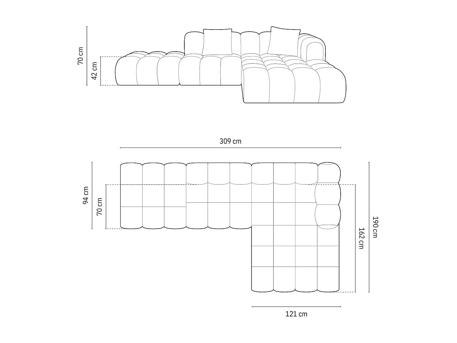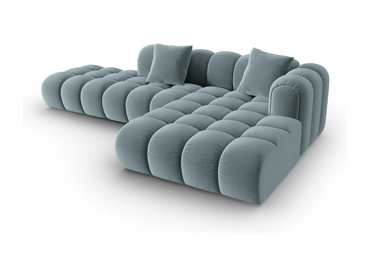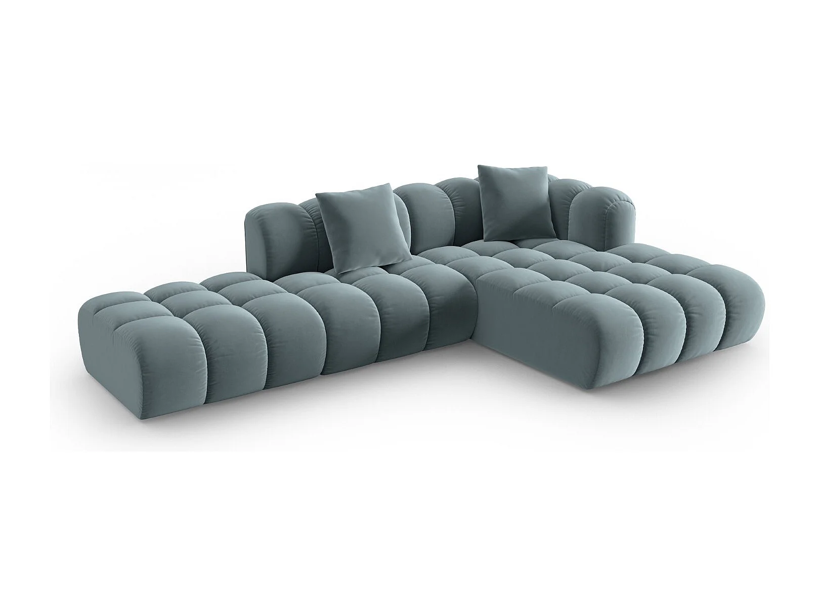 CXL by Christian Lacroix - Divano angolare modulare destro "Clotilde" 4 posti in velluto azzurro - 309x190x70cm