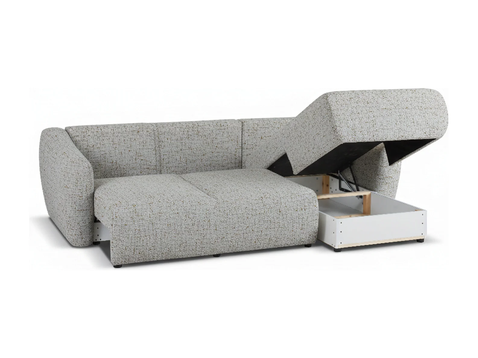 Divano angolare Santi con funzione letto e contenitore – 255×165 cm – moderno, trasformabile, comodo per il soggiorno