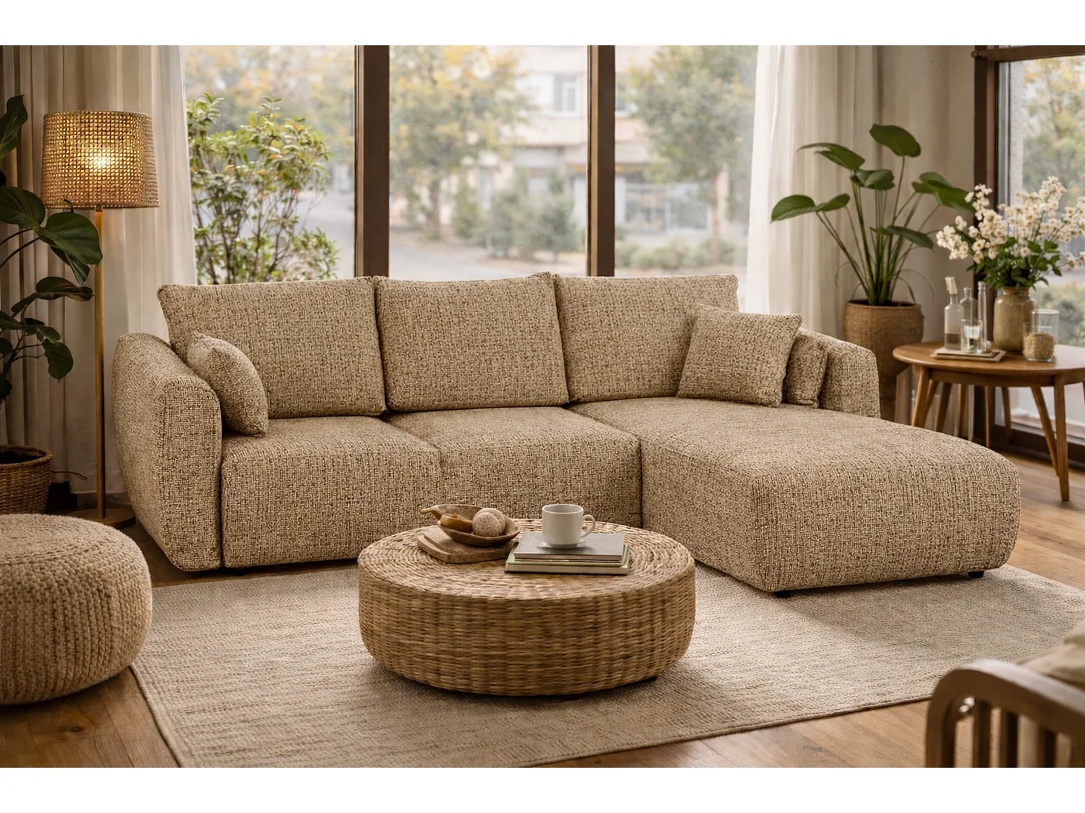 Divano angolare Santi con funzione letto e contenitore – 255×165 cm – moderno, trasformabile, comodo per il soggiorno