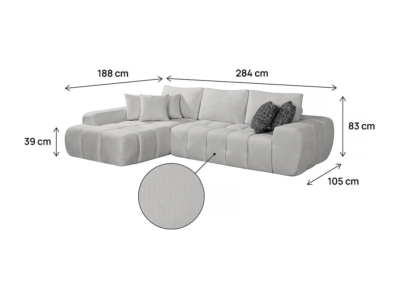 Divano angolare sinistro "Sidonie" in tessuto a bolle - 4 posti - Grigio