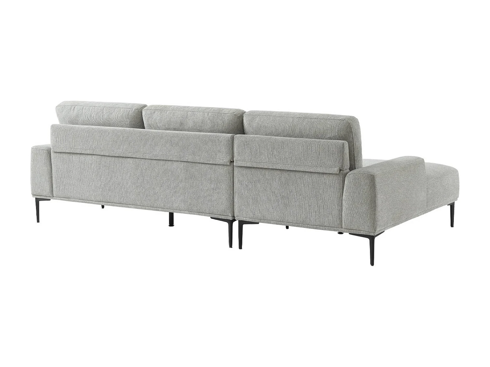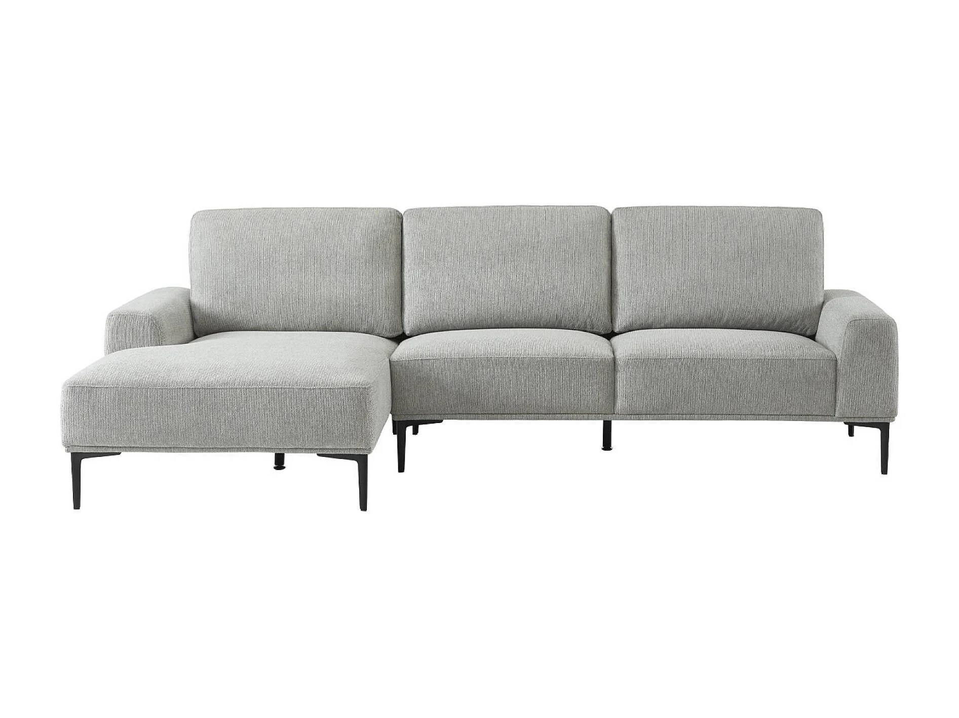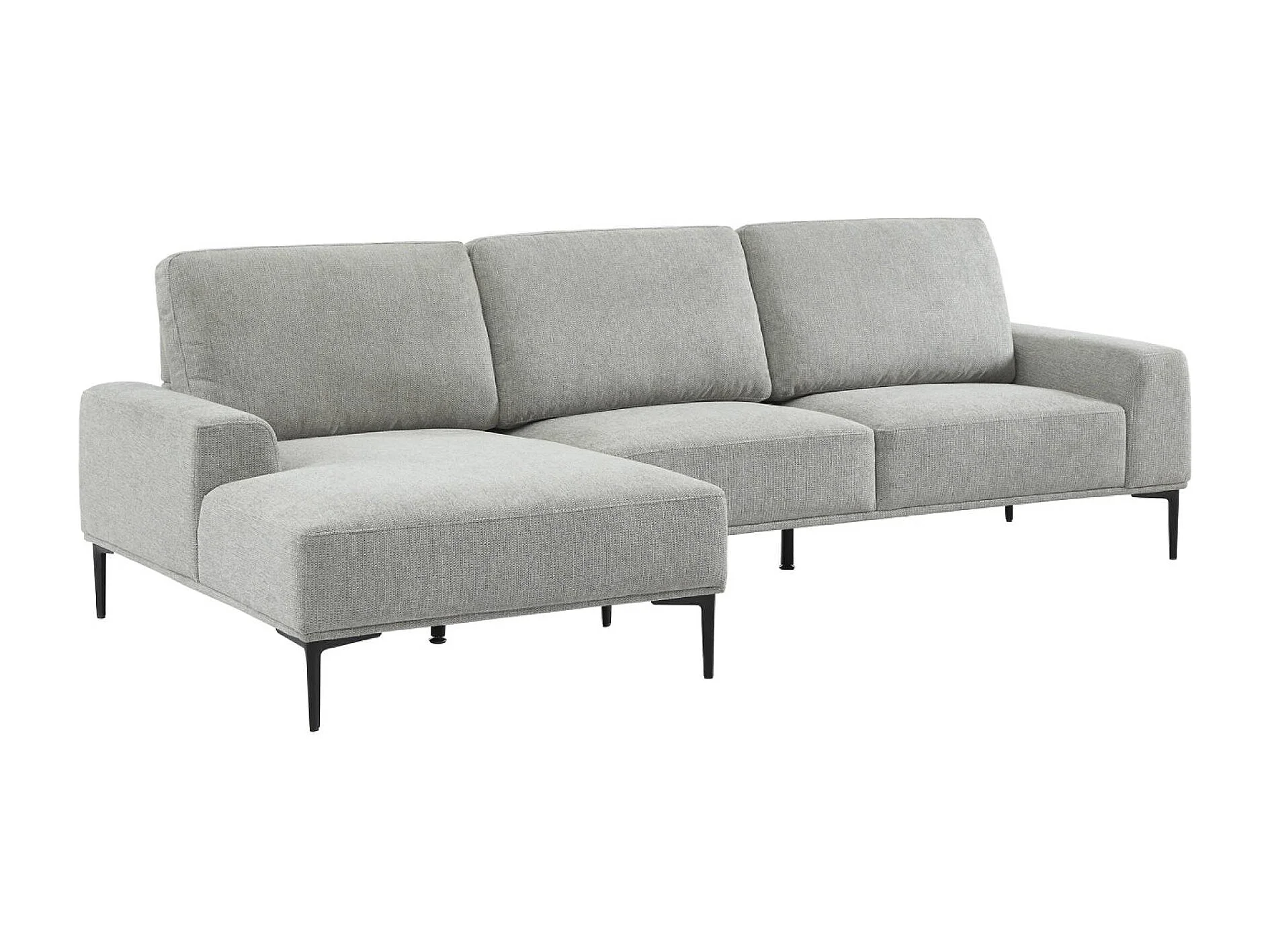 Divano angolare sinistro in tessuto e metallo, 3 posti, grigio chiaro