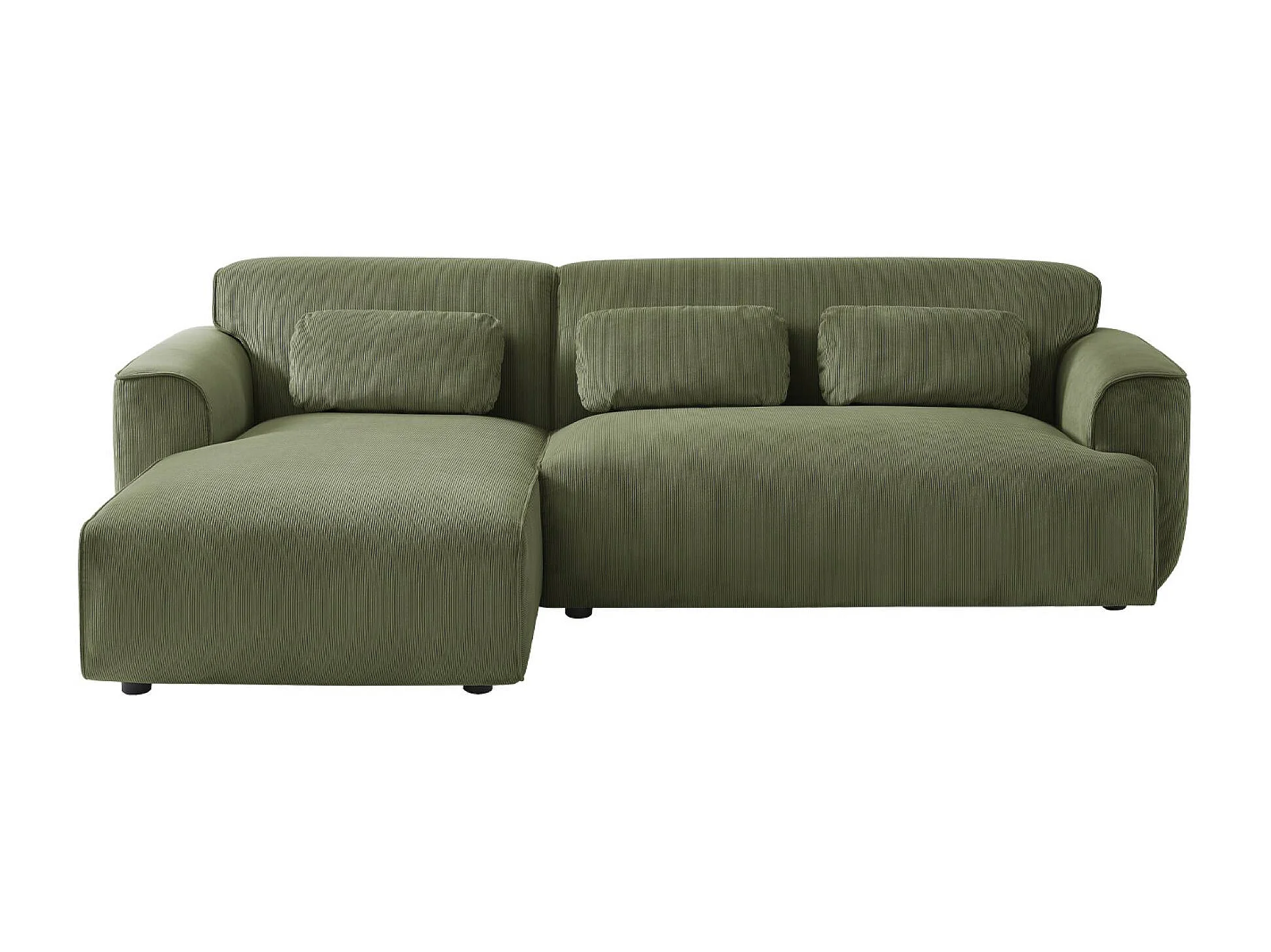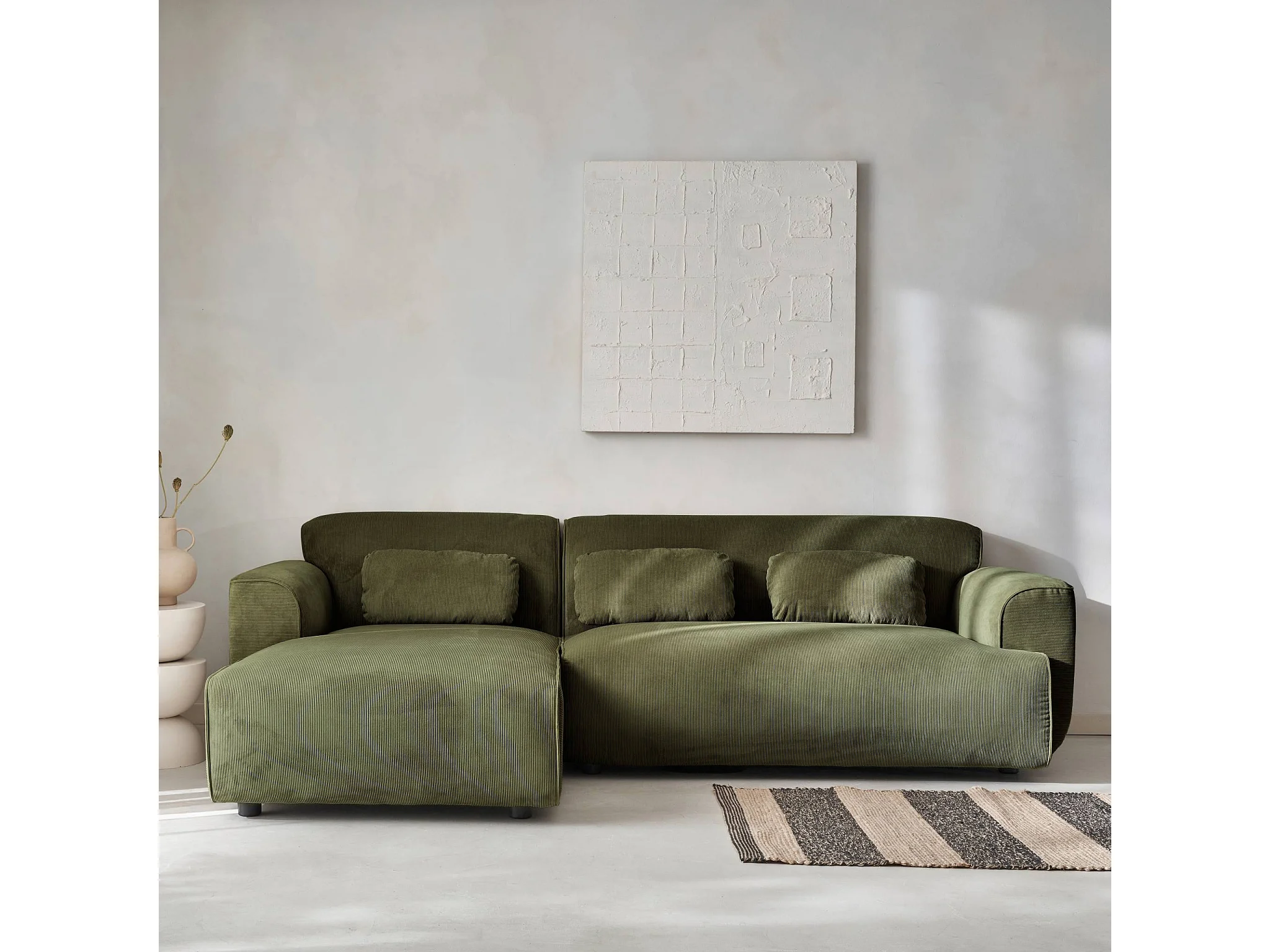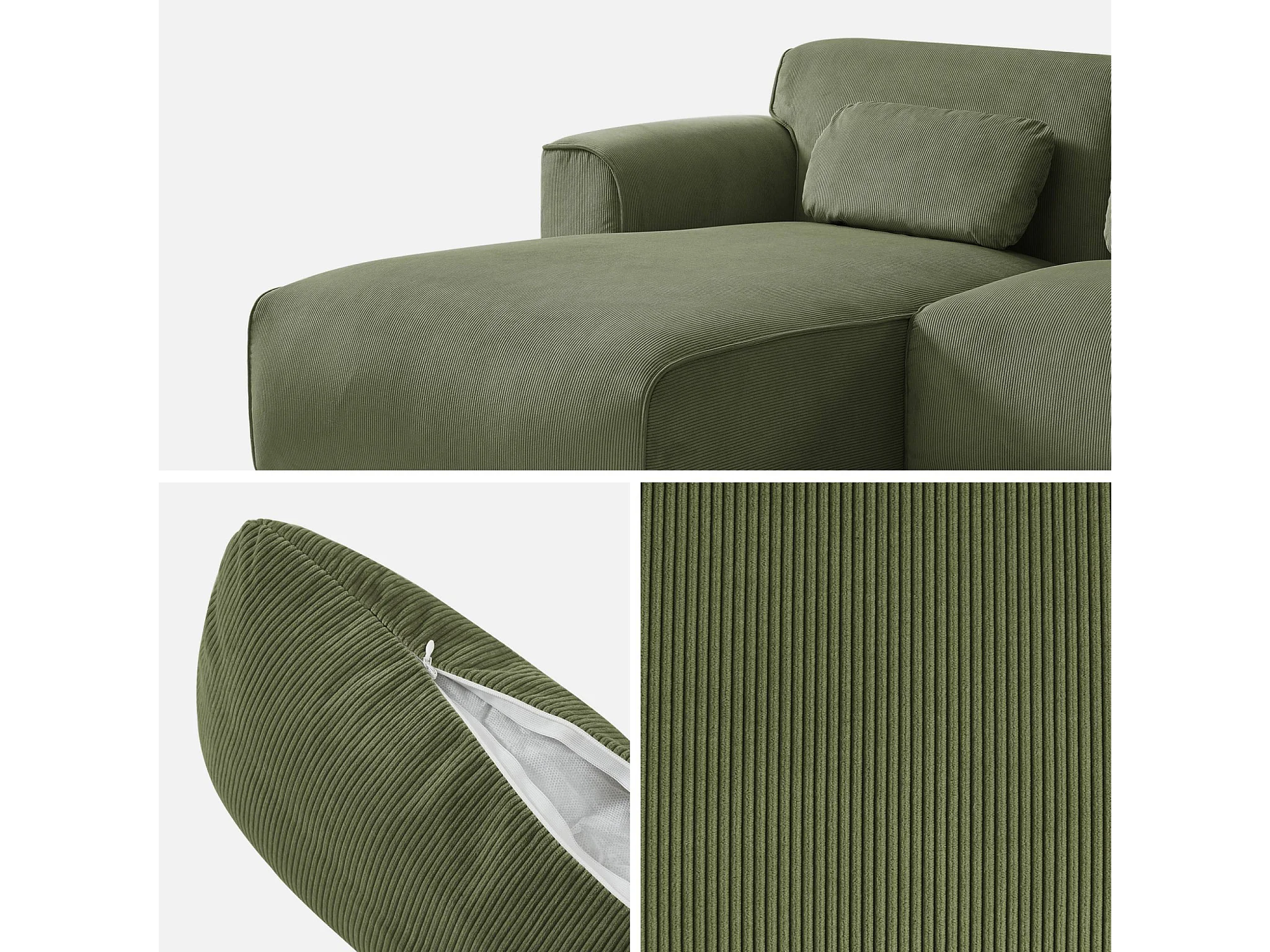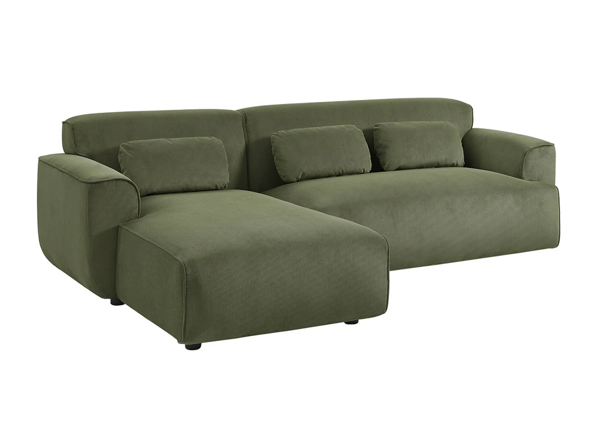 Divano angolare sinistro in velluto a coste fini, 2-3 posti, verde