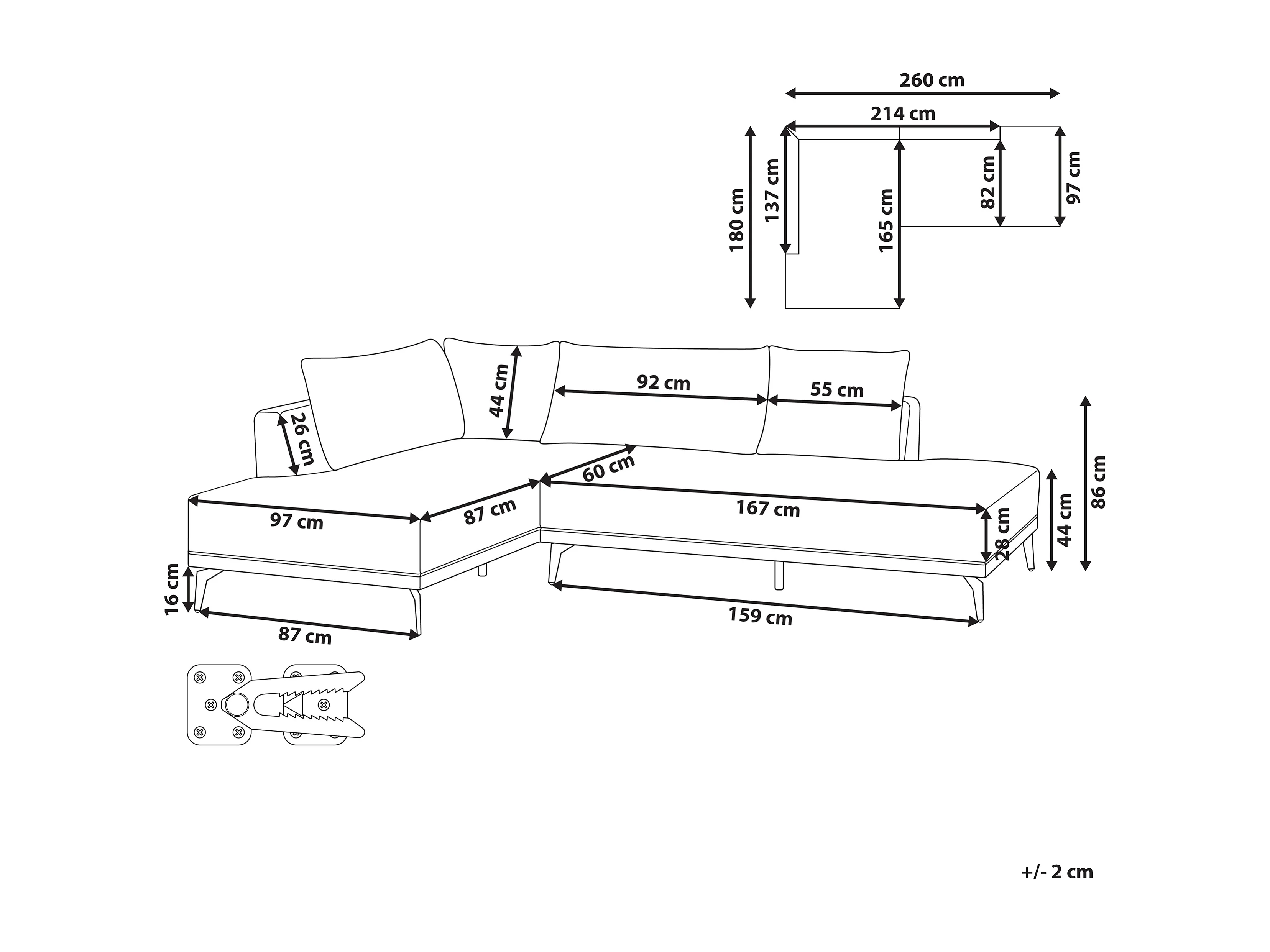 Divano angolare MYKEN Tessuto Grigio chiaro 3 posti Lato destro