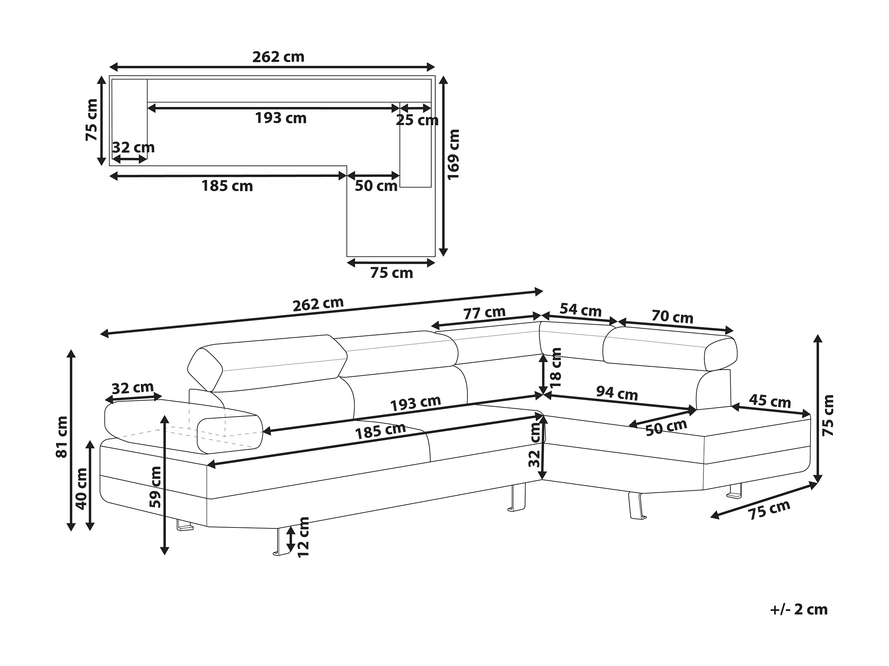 Divano angolare NORREA Velluto Grigio 5 posti Lato Sinistro