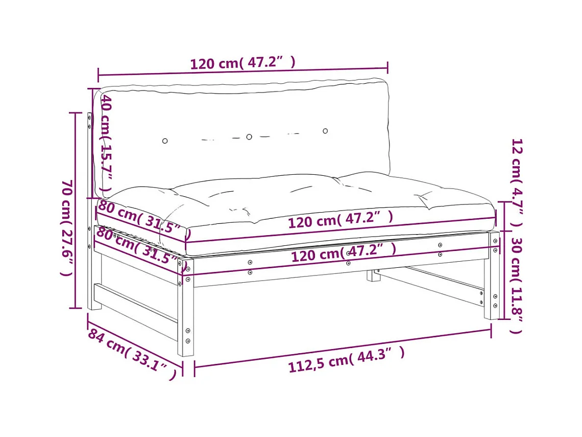 Divano Centrale Giardino con Cuscini in Legno di Pino