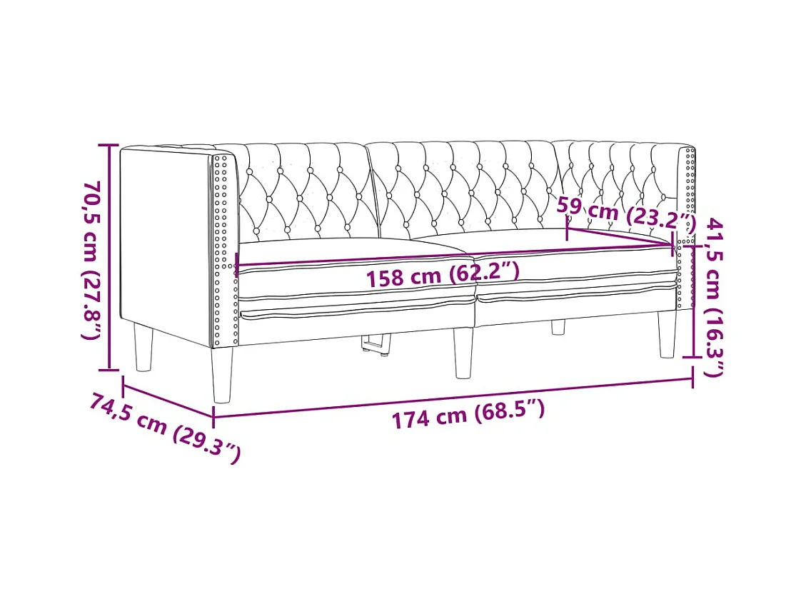 Divani - 2 posti - PU (Poliuretano) - Neri
